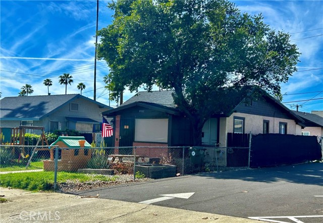 Opportunity awaits. Located in the city of Fontana, 2 Homes on 1 lot near downtown Fontana. The front house has 2 bedrooms, 1 bath, a small front porch, a gated front yard, and includes a separate conversion/back house; the back porch area is shared with the back house. The back house has 1 bedroom and 1 bath, plus a small office space. A one-of-a-kind spot to do more than just live. Business shops are located around the property, and public parking is right next door. Great location near shopping, public transportation, a train station, a nearby middle school, a post office, city hall offices, and community centers and fire department. Property zoned WMXU- walkable mixed-use, and is in the opportunity zone. This home offers a great opportunity, making it perfect for investors or buyers seeking a strong investment. This is also a great opportunity for creative thinkers to provide services to the local community and live on-site. This is a great home with a guest house in the back for family or friends.
