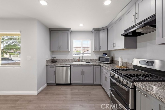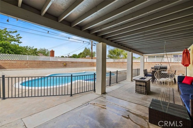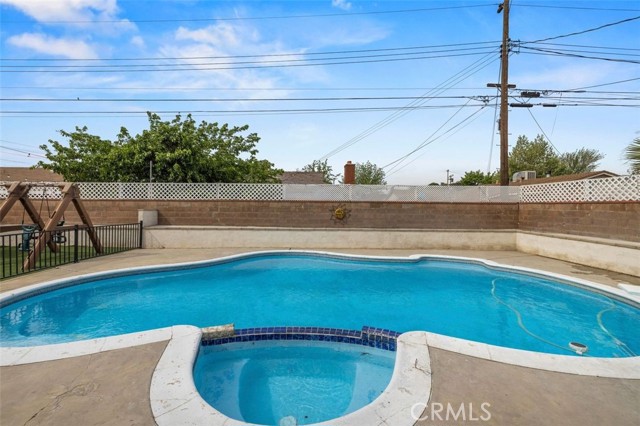 Single Story ranch style home with sparkling pool and spa ready for summer, rare opportunity the home was redone in 2021 to new, park like front yard with grand shade tree, enter into your great room with a center piece fireplace with tile surround open to informal dining area and large newer kitchen with grey shaker style cabinets and granite counter tops, stainless steel appliances, most of the flooring is a grey laminate, large primary suite with attached primary bathroom with newer vanity with granite counters and tile tub and shower combo, back yard is for entertaining, large covered patio overlooking a pool and spa, side yard has imitation grass no water needed, green all year, bed 2 & 3 have laminate floors and hall bath has a newer vanity with granite, and tub/shower combo, laundry hook ups, two car garage, home was redone in 2021, new roof, windows, kitchen, bathrooms, flooring, AC & Heat, water heater, garage door, call agent Adam for more info, run don't walk this homes a winner.