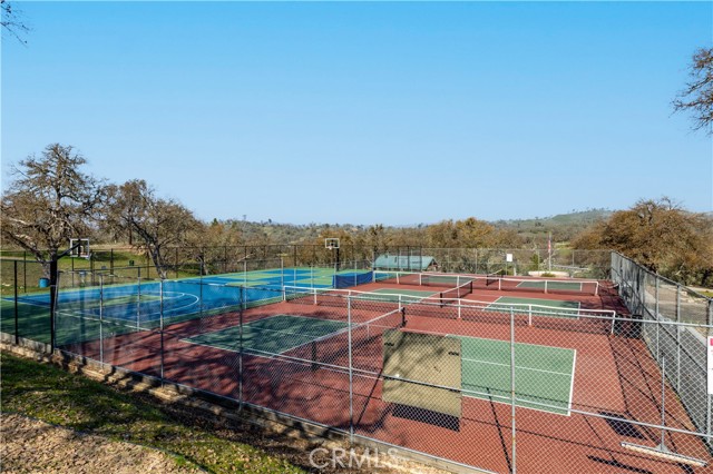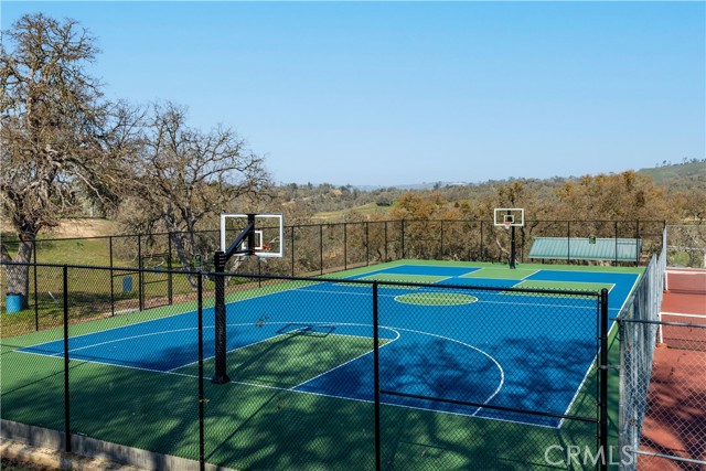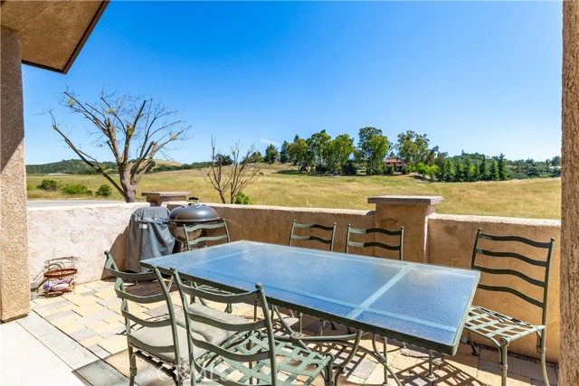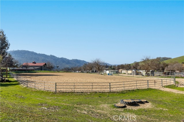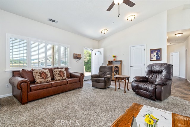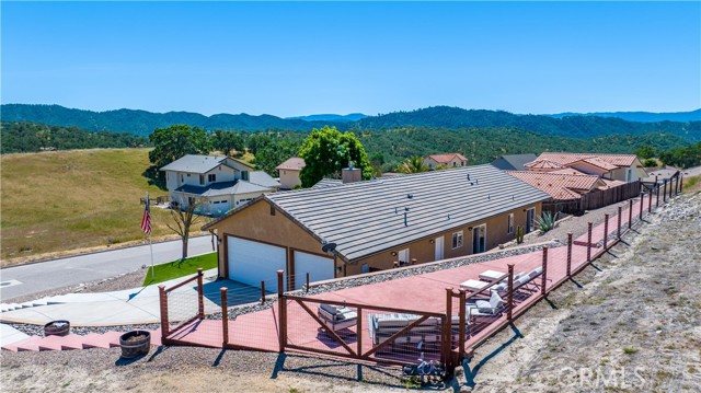 LOCATION! Privacy, space, and the ultimate lake lifestyle. Welcome to Lakeside village and this beautifully maintained single-level 3-bedroom, 2-bath home, ideally situated on a quiet cul-de-sac in the highly desirable Heritage Ranch community. With open space above the home and a peaceful greenbelt behind, this property offers a rare combination of privacy and scenic surroundings. Upon entering the home, the open-concept floor plan allows for each room to flow together however rustic charm and details highlights the home where vaulted ceilings create a bright, and airy feel. The living room is anchored by a stunning rock fireplace with a floating mantle, adding warmth and character—perfect for cozy evenings. Nine-foot ceilings extend throughout the rest of the home, enhancing the sense of space. The kitchen is designed for both function and style, featuring granite countertops, stainless steel appliances, ample cabinetry, & a versatile movable island. The kitchen flows seamlessly into the dining area. Just off the kitchen, you’ll find a convenient indoor laundry room complete with a sink and additional storage. Down the hall, tile flooring transitions into cozy carpeted bedrooms. The nice sized primary bedroom tastefully designed with a walk-in closet accented by a custom sliding barn door ensuite bathroom is its own mini oasis equipped with soaking tub, private stand alone shower, & water closet, Second and third bedroom are comfortably sized with adequate closet space, ideal for guests, family, or a home office. Moving towards the outside of the property pride of ownership truly shines. Thoughtfully designed rock landscaping pairs beautifully with clean concrete hardscaping adding longevity and ease of use with a charming wraparound porch. You will find a pathway leading to a newly developed upper deck & lounge area. The expansive driveway and oversized, extra-deep 3-car garage Additional features include a durable concrete tile roof, owned solar, water filter system and fire sprinkler system for added peace of mind. This property is conveniently located walking distance to Oak Hill Market, Cappy Culver (K- 8), Restaurants, Gas, Gym, Hairitage Salon and a mile from the launch ramp. Heritage Ranch has community events, with access to a private marina and boat launch, two pools, sport and pickleball courts, scenic trails, parks, playgrounds, an equestrian center, & as a 24-hour gated attendant. It's country living with all the conveniences of the city.