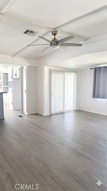 $395/month space rent. Read that again. That's one of the lowest in Northview and one of the lowest in all of Yucaipa's 55+ communities. Water, sewer, and trash are billed through the park separately. Gas and Electric go directly to you. Now walk inside this great North Bench home. Every surface has been refreshed top to bottom by a licensed General Contractor. New Mohawk luxury vinyl plank flooring runs through virtually every room. Fresh dark countertops, a new stainless sink with disposal, and a breakfast bar that brings the kitchen and living space together into one open concept, the way people actually want to live. Crisp white cabinetry with decorative scallop detailing and matte black hardware fills the kitchen floor to ceiling. A full-size built-in china hutch with glass-front doors anchors the dining area. And then the space hits you. Pop-out expansions running virtually the entire length of the home push it to a full 20 feet wide. HCD registers it as a single-wide… you get the benefit of reduced registration fees every year, but it lives like a double. You feel it the moment you step into the great room. Vaulted ceilings. Modern ceiling fans. Light pouring in from every direction. This is not the mobile home you're picturing. This is the one that changes your mind. Two bedrooms sit side by side off a private hallway. Both feature gray accent walls and built-in closet systems with sliding doors and drawer storage underneath. The master takes it further with closets spanning two full walls, floor to ceiling. No furniture needed. Central heat and air to keep you comfortable year-round. The bathroom is clean and bright with easy-care flooring in a classic tile pattern, a maple vanity with framed mirror, walk-in shower with sliding glass enclosure, and a linen cabinet built right in. Step out the sliding glass door onto an 80 sq ft composite deck and you're looking directly at the clubhouse and pool. Mountain views behind you. Covered carport beside you. A dedicated utility room with inside laundry hookups and water heater, plus enough room to keep everything organized and out of sight. Pets welcome. RV parking available. Financing available for qualified buyers. $1,500 appliance credit included for range, hood, and microwave. Section 1 termite clearance provided. Move-in ready. Call or text John for a private showing.