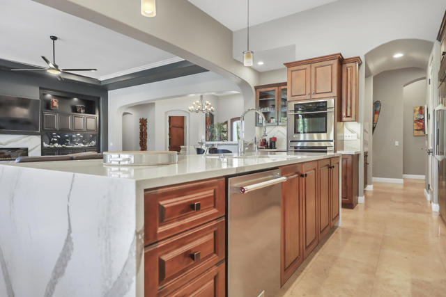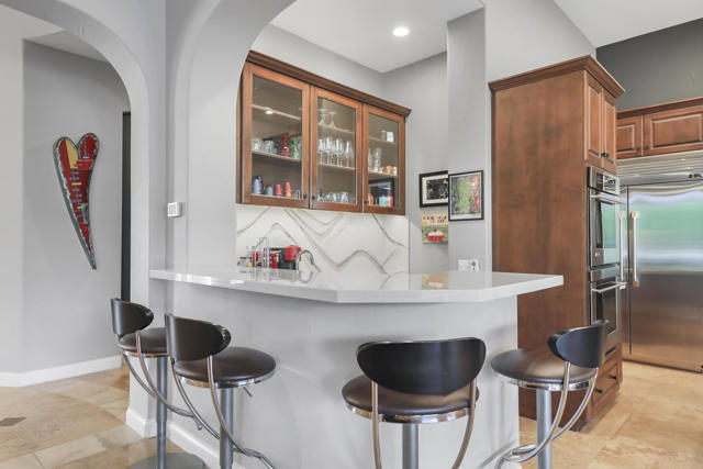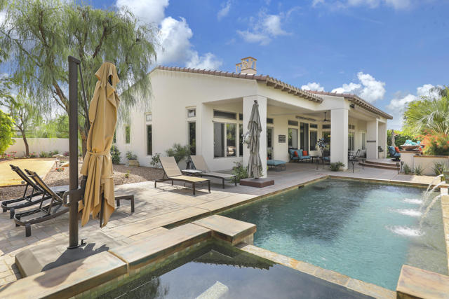 A rare opportunity to own a terrific refreshed former Model Home. This luxury 4 bedroom including Casita home, at Griffin Ranch, with a completely remodeled kitchen, with new quartz counters, backsplash, waterfall Kitchen Island and refreshed cabinets is one of the most popular floor plans. The upgrades start at the very private gated entrance and covered front courtyard with all new misting system & fireplace. This outdoor space sets the tone for how all the living spaces have been redesigned. Twin office /den spaces allow couples each private space for work, or play. Once inside you'll be impressed with how current this former model lives with the open great room, large cooks' kitchen & comfortable Morning room. If you are looking for privacy, this is it! The mature landscaping provides you with an amazing backyard, pool, spa, bocce ball court, room for your family & friends or head over to clubhouse and enjoy all the amenities that Griffin Ranch has to offer, including Pickleball, Tennis, Jr Olympic pool & spa. The parties at the clubhouse are second to none, the pickleball group has grown to well over 100 players, this is simply a fun place to live & play.