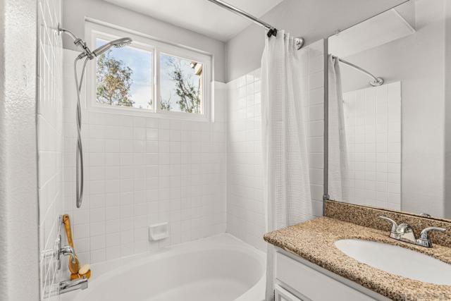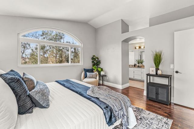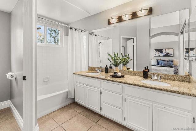 Move-in ready and beautifully refreshed, this two-story Terra Nova townhome lives like a single family home with attached private garage and only one shared wall. Fresh paint, central A/C, and wood-laminate flooring throughout create a clean, modern feel, while vaulted ceilings and abundant natural light enhance the open, airy layout. The well-appointed eat-in kitchen features granite countertops, crisp white cabinetry, and ample storage, flowing seamlessly into the living space highlighted by a cozy fireplace. A downstairs bedroom and full bathroom provide flexibility for guests or a home office. Upstairs, the spacious primary suite offers a relaxing retreat with a walk-in closet and en-suite bath. Step outside to a private, low-maintenance backyard—perfect for enjoying indoor-outdoor living with minimal upkeep. Additional features include a supplementary assigned parking space, ample guest parking, and convenient in-unit laundry room. Residents of Terra Nova enjoy access to community amenities including a pool and playground, all in a well-maintained neighborhood close to everyday essentials. Steps from the shops, dining, and amenities of Terra Nova Plaza, and easy access to the 805 freeway.