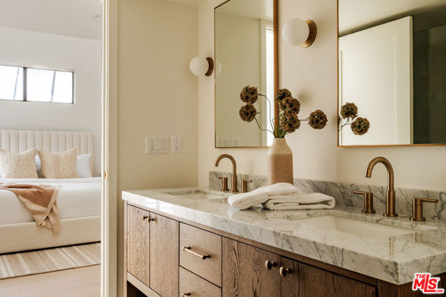 Ideally located just a half block South of Montana Ave., this beautifully remodeled Santa Monica townhome offers a sophisticated blend of modern upgrades and comfortable living. Thoughtfully and comprehensively renovated, the residence features three bedrooms and two and a half baths, with oak floors flowing throughout the home. The open-concept floor plan centers around a chef's kitchen and spacious great room, designed for both everyday living and effortless entertaining. The kitchen is appointed with a full suite of Thor appliances, wine cooler, generous counter space, beautiful cabinetry and a seamless connection to the living and dining areas. A separate office nook provides a dedicated workspace ideal for working from home. Two private patios extend the living spaces to the outdoors, creating peaceful areas for entertaining or relaxing. Upstairs, there are three bedrooms, each with generous closet space offering flexibility for family, guests, or additional workspace. Newly renovated bathrooms include a spacious primary bath with a marble dual vanity and a walk-in shower with dual shower heads. Additional amenities include a private 2-car direct-access garage and ample storage closets. Situated in the Franklin school district within one of Santa Monica's most sought-after neighborhoods, just steps from Montana Ave. shops and dining, and a short stroll to Palisades Park and the beach, this turn-key townhome combines thoughtful design, quality upgrades, and an exceptional location.