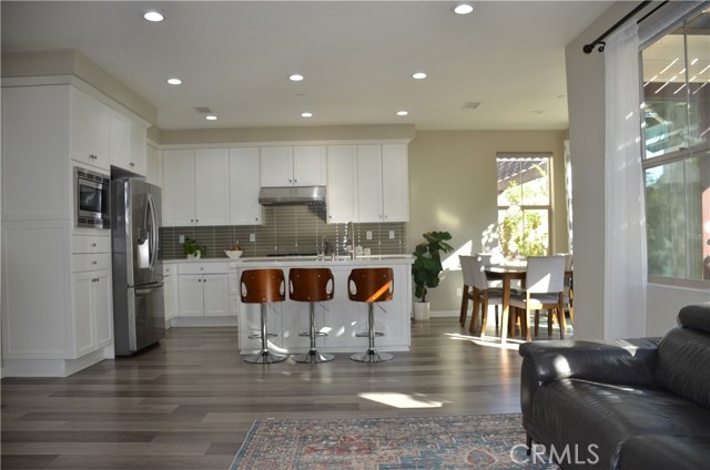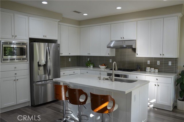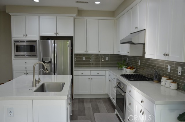 Great opportunity to live in the highly desirable Cypress Village Community in Irvine in this beautifully appointed, 2-story unit Tristania Plan 1 town home. Features 3 bedrooms, 2.5 bathrooms, attached garage & backyard. It has an open, airy floor plan with tons of light. The gourmet kitchen in the 1st floor opens up to the family room and includes beautiful white shaker cabinets, upgraded quartz counter tops with full backsplash, with a stunning large kitchen island, and BOSCH stainless steel appliances. It comes with LG Refrigerator in the kitchen. The house features a half bath in the 1st floor. The house has Honeywell Thermostats in both 1st and 2nd floor. Upstairs features a large Master bedroom with a master bath along with 2 other spacious bedrooms and 2nd full bath. All the bedrooms closets have upgraded cabinets including the coat hanger closet near the stairway. The Laundry room is equipped with LG washer and LG GAS Dryer. The house features an upgraded laminate wooden floor on the 1st floor & upgraded carpet on second floor. It has Tile in upstairs laundry & bathroom and recessed lighting throughout the house. This home has a 2-car attached garage with MyQ Garage operation, epoxy flooring, storage cabinets and EV charging point. Enjoy resort style amenities including hiking & biking trails, sparkling swimming pool, clubhouse, and walking distance to all of the Cypress Village and Great Park amenities, including Fivepoint Ice Skating rink. Close to shopping at Woodbury Town Center & Irvine Spectrum, Great parks, Jeffrey Trail, and easy access to the freeways, major employment centers and award winning Irvine schools (Cypress Village Elementary, Jeffery Trail Middle School, and Irvine HS).