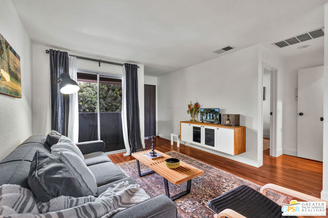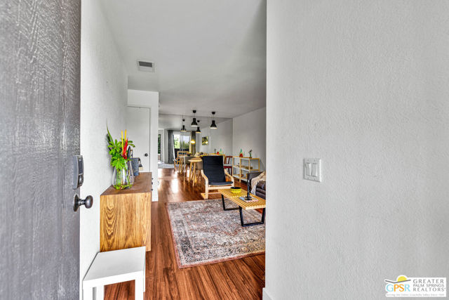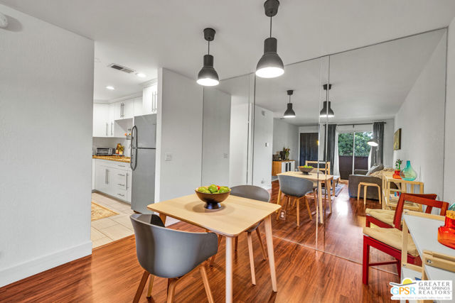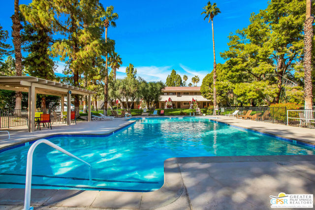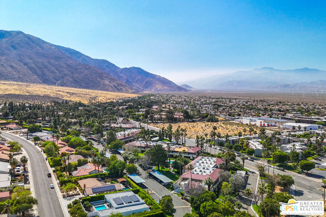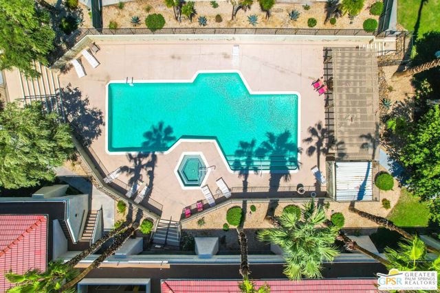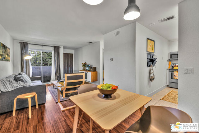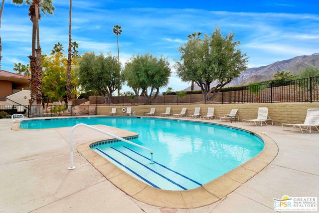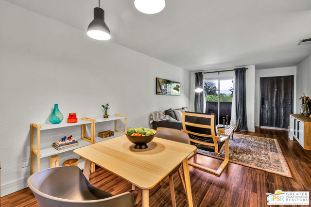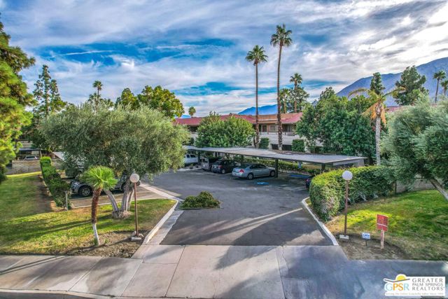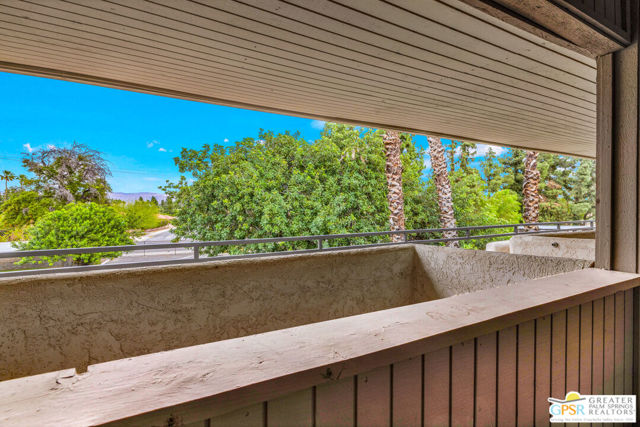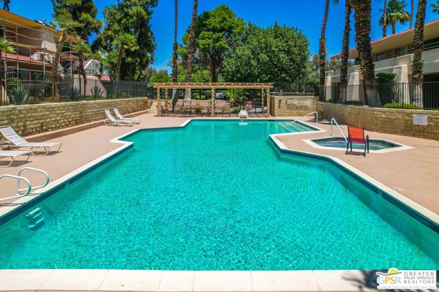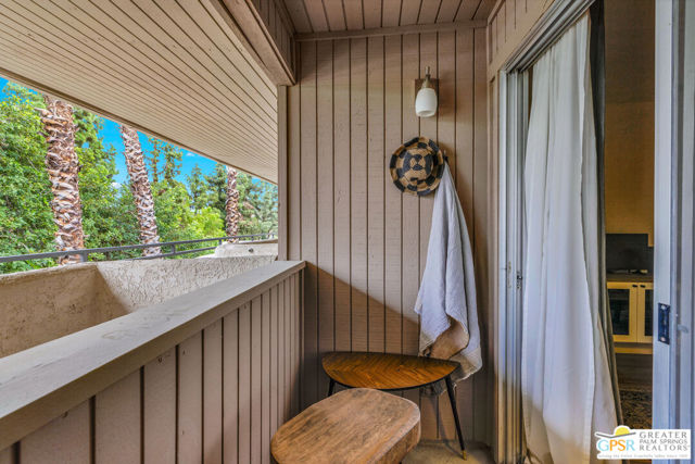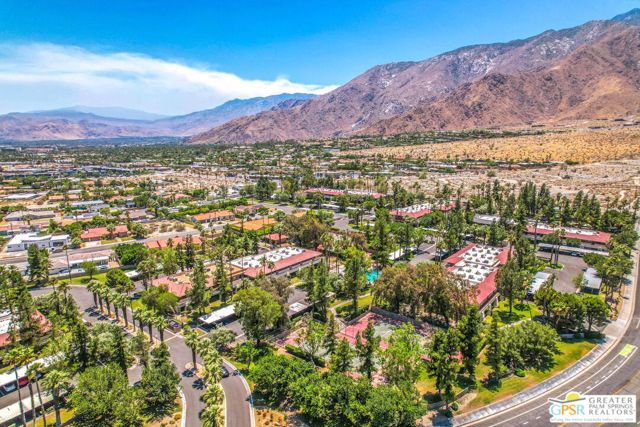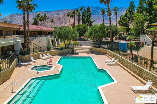 Modern Retreat. They say good things come in small packages, and this stylishly updated second-floor condo is the proof. Offering modern comfort in a perfectly scaled footprint, the interior features a custom floating media cabinet, sleek stainless appliances, and soft-close cabinetry that keeps the vibe fresh and organized. Significant upgrades provide total peace of mind, including a brand-new A/C system installed in the summer of 2025 and a remodeled bathroom complete with a classic black & white subway tiled shower and integrated niche shelf. The community feels like a desert sanctuary, where you can spend your days enjoying the sparkling pools, relaxing spas, and tennis courts set against a backdrop of mature landscaping and beautiful San Jacinto mountain views. For the outdoor enthusiasts, you are perfectly positioned near the CV Link, the Aerial Tramway, and world-class hiking trails, all while staying just minutes from the energy of Downtown Palm Springs. This home comes partially furnished and sits on Fee Land, making it easy for full-time living, a weekend escape or a savvy investment opportunity.
