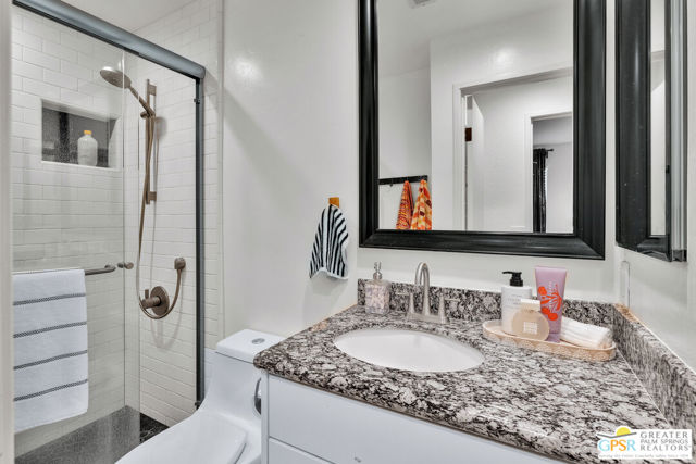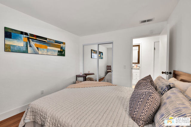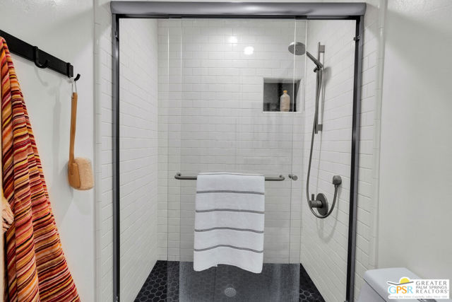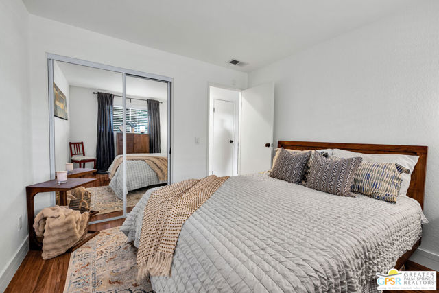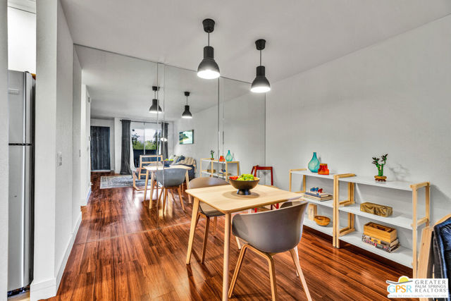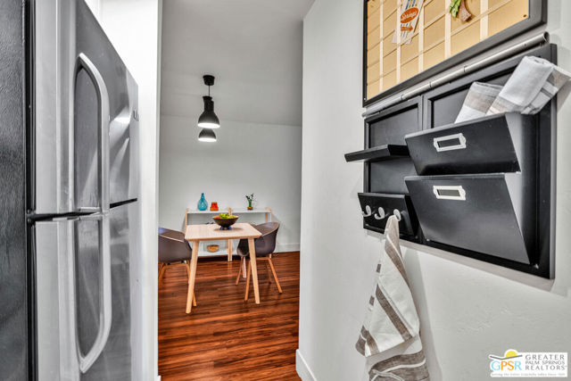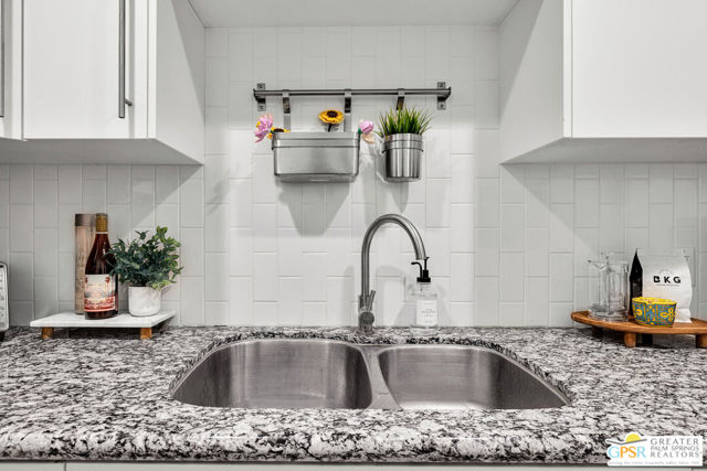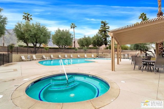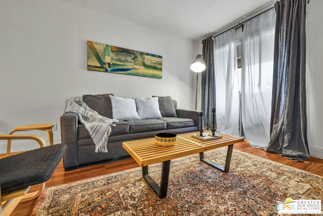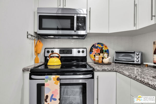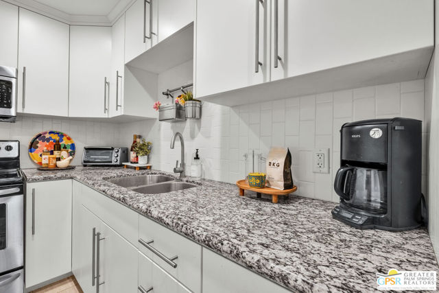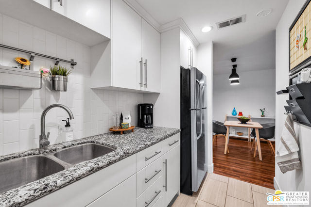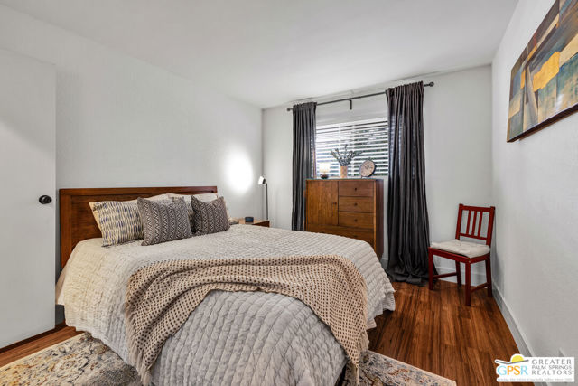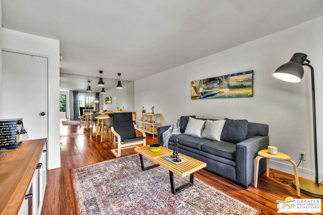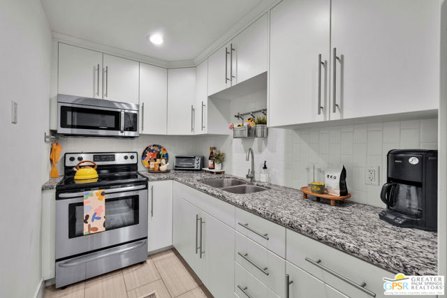 Modern Retreat. They say good things come in small packages, and this stylishly updated second-floor condo is the proof. Offering modern comfort in a perfectly scaled footprint, the interior features a custom floating media cabinet, sleek stainless appliances, and soft-close cabinetry that keeps the vibe fresh and organized. Significant upgrades provide total peace of mind, including a brand-new A/C system installed in the summer of 2025 and a remodeled bathroom complete with a classic black & white subway tiled shower and integrated niche shelf. The community feels like a desert sanctuary, where you can spend your days enjoying the sparkling pools, relaxing spas, and tennis courts set against a backdrop of mature landscaping and beautiful San Jacinto mountain views. For the outdoor enthusiasts, you are perfectly positioned near the CV Link, the Aerial Tramway, and world-class hiking trails, all while staying just minutes from the energy of Downtown Palm Springs. This home comes partially furnished and sits on Fee Land, making it easy for full-time living, a weekend escape or a savvy investment opportunity.