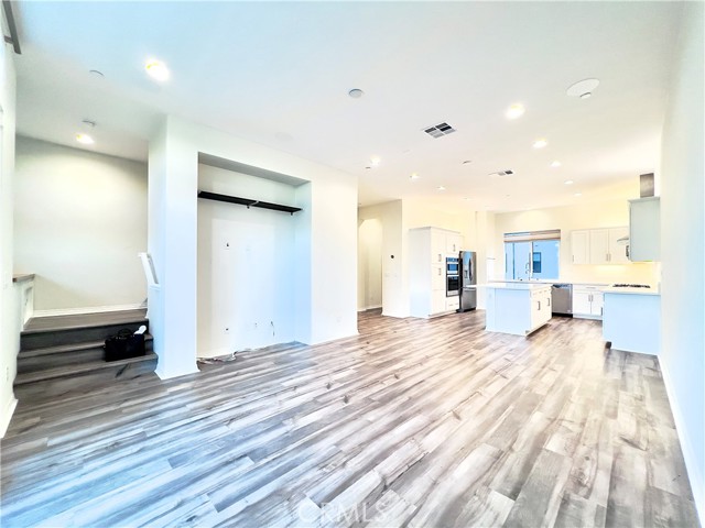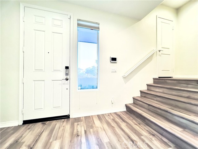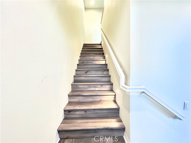 Beautiful tri-level contemporary condo home with amazing views of Saddleback Valley. SAVE! SAVE! SAVE! This home has solar panels to keep energy bills LOW! Enjoy direct parking access to the property with an attached side-by-side two-car garage with EV charging. Bright and airy with new appliances, recessed lighting, smart thermostat, stainless steel refrigerator, reverse osmosis water filter system, water-softener system in the garage, automatic window coverings (via remote control), and an extra-large kitchen with a central island. Luxury vinyl flooring throughout the entire home. Lots of space in the private front patio with artificial turf and a second-floor balcony. The two upstairs bedrooms are at opposite ends of the hallway for extra privacy. The primary bedroom features a spacious standing shower, dual sinks, and a large custom walk-in closet. The second bedroom features its own private bathroom with a tub and a walk-in closet. The home includes a stackable Samsung washer & dryer and is conveniently located between both bedrooms in the hallway. Ideally located a short distance down the road from the community clubhouse, pools, barbecues, public green space, dog parks, swimming pools, walking trails, and playgrounds. There are no neighbors in front, and Portola High School is located directly across the street.