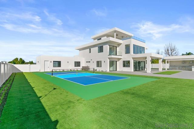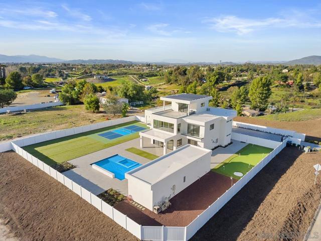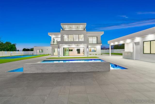 The most modern, sophisticated, and luxurious home in Temecula Wine Country. This opulent Ibiza-style villa was designed after the award-winning Villa Fabulosa—selected by Expedia and VRBO as the top vacation rentals in the U.S. The brand-new 5,000 SF home features 5 spacious bedrooms, 5.5 baths, a professional theater room, an expansive gourmet kitchen with a vast pantry, a magnificent walk-in closet, a 4-car garage with glass doors, two balconies, and two roof decks with breathtaking 360-degree views. Includes exquisite modern finishes, a soaring 22-ft family room with a dramatic fireplace, a 20-ft sliding glass door blending indoor/outdoor living, and the most gorgeous sunsets! Resort-style amenities include a pro-sized pickleball court, putting green, large pool & spa, sports area, and more, surrounded by over 55 world-class wineries. Includes a 750 SF outdoor kitchen with everything you can imagine. Plus a large bonus room. It includes a large flat pad perfect for horse stables, tennis courts, a warehouse, etc.