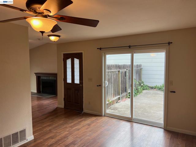 Springtown Home features updated kitchen with custom cabinetry, stainless steel dishwasher, gas oven, built-in microwave, refrigerator, solid surface counter tops & recessed lighting opens to dining area with lighted ceiling fan and slider access to patio & yard. Main living area with fireplace, lighted ceiling fan and volume ceiling. Primary bedroom with slider access to deck & yard, mirrored closet doors and primary bathroom with shower. Both other bedrooms feature mirrored closet doors. Full hall bath with shower over tub. Ample linen cabinets in main hall offer additional storage options. Full two car garage with direct interior access. Large, private yard with patio, deck and lawn. Community pool access included.