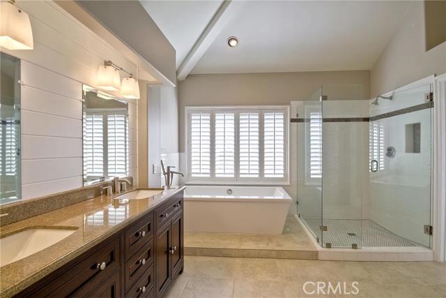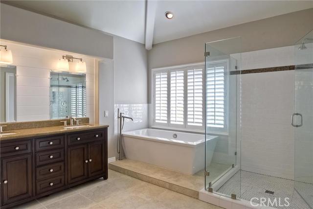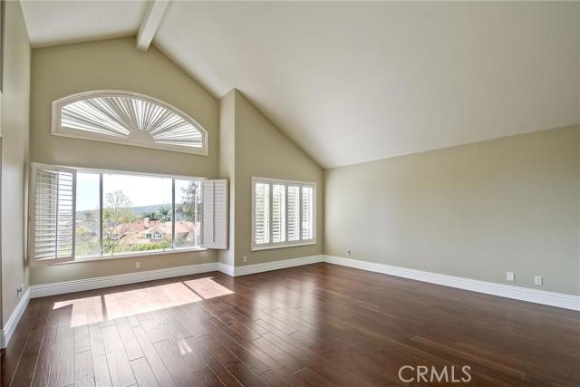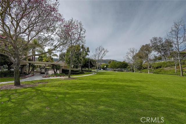 Welcome to Crest de Ville: wide, tree-lined streets, pristine grounds, manned guard gate 24/7/365. 25 Bridington sits atop a gentle knoll on a single loaded street, with a generous 7800 square foot lot. This very private "Estates" section home features wide setbacks, a dignified architectural profile, and 4 bedrooms and 3 and a half bathrooms, including a downstairs bedroom and en suite bathroom. The panoramic view overlooking the park is expansive and majestic: bountiful trees; a big, big sky; the rugged ridgeline to the right; and straight out at a distance, the ocean glistens on the horizon on a sunny day. Whimsical cloud formations; refreshing ocean breezes traveling to you up the Salt Creek Corridor; and birds of every type complete the picture. Requisite luxuries include: neutral palettes; soaring ceilings; hardwood floors; French country kitchen in shades of ecru with granite countertops, Subzero refrigerator, Viking and Bosch appliances, Villeroy and Boch farmhouse sink; custom built-in cabinetry in family room and 4th bedroom (home office); huge master suite with splendid views, soaking tub, and dual walk-in closets; a large very private, verdant backyard—the rose covered gazebo is sublime; and extensive Community amenities. Just a short distance to numerous beaches, Dana Point Harbor, iconic Laguna Beach, luxury hotels, and healthy Farmers’ Markets. Easy access to freeways and time-saving toll roads…..and a wonderful landlord, too!