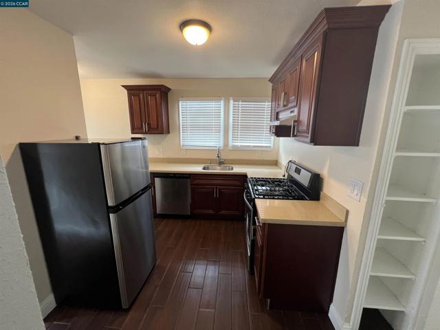 Charming 2-bedroom, 1-bath home for rent in Oakland offering approximately 800 sq ft of comfortable living space. The main floor features a bright living area that flows into a well-appointed kitchen with stainless steel appliances, including a gas stove, refrigerator, and dishwasher, along with a cozy breakfast nook. A separate laundry room with washer and dryer adds everyday convenience. Tile flooring throughout ensures easy maintenance, and an efficient AC unit helps keep the home comfortable year-round. The property includes front and back outdoor areas, providing space for relaxing, gardening, or entertaining. Off-street parking available for a small vehicle, in addition to street parking. Conveniently located near schools, shopping, freeway access, and public transportation (Bus #62). One-year lease. Renter’s insurance required prior to move-in. No pets. No smoking. Tenant responsible for all utilities except garbage. $50 application fee per adult for credit and background screening.