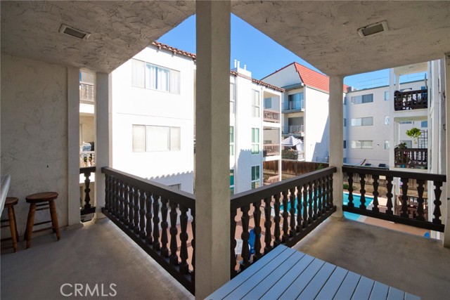 Spacious and bright third-floor unit in the charming 27-unit Seville complex, located directly across from Fox Hills Park. This well-designed and remolded home features vinyl plank flooring, a sunken living room with fireplace, and an updated kitchen with quartz countertops, stainless steel appliances, and ample storage. Enjoy a large covered L-shaped balcony with pool views, accessible from both the living room and kitchen. The unit includes a remodeled bathroom, a relaxing primary bedroom with a walk-in closet, double-pane windows, elevator access, and secure subterranean parking. Conveniently located near shopping, dining, Marina del Rey, beaches, Playa Vista, and LAX.