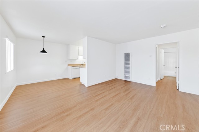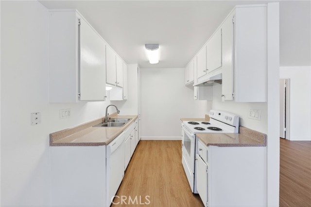 SPACIOUS OPEN FLOOR PLAN UNIT WITH PLENTY OF NATURAL LIGHT LOCATED IN A GATED COMMUNITY. Step inside this bottom-level unit and notice immediately the perfect open-living concept, with a spacious living room, dining area, and kitchen all connected. The kitchen includes a range, dishwasher and a refrigerator with a stainless steel sink—vinyl wood flooring in the living area, kitchen, dining area, bathroom, bedroom. A sizeable bedroom features a closet and large window, inviting in plenty of natural light. Rent includes Trash. The unit comes with two car parking spaces. Community washer and dryer conveniently located on the property in a separate room, steps away, and located near many restaurants, shops, and entertainment.