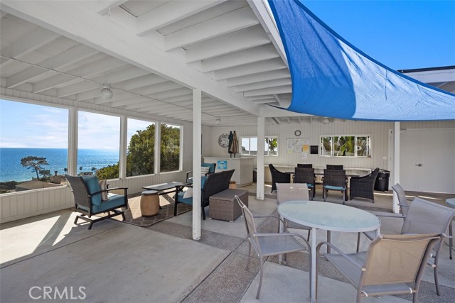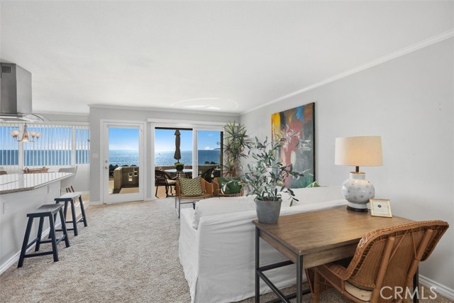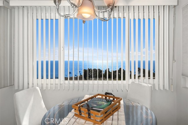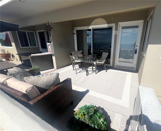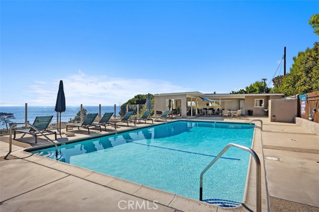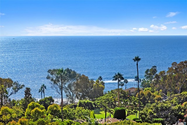 TURNKEY, fully furnished and equipped in the Montage Resort neighborhood. Experience amazing, forever unobstructed, sit-down 180 degree ocean, whitewater, and Catalina Island views from this single level, 2BD/1BA ground floor condo on a wide, scenic blufftop. A one car garage with storage is included, and street parking is available for additional cars. Garage is accessible by a pathway that has only three stair steps. Watch the shimmering ocean and captivating Catalina Island sunsets, from the private ground level lanai / front patio, where you can dine al fresco while enjoying the ocean breeze. Bring your binoculars and you might see whales just yards beyond the shoreline! Step inside to find a seamless blend of light and bright, indoor-outdoor living with an open concept kitchen, dining area, and living room, all with ocean views. Fully equipped with cookware, glassware, plates, flatware, cutlery, linen and towels. Well appointed with modern and beach themed decor, the space gives a relaxing feeling of a resort along with the community's private, heated swimming pool, lounge chairs, and cabana overlooking Aliso Creek Beach. The spacious, primary bedroom features a king size bed and has its own fenced private back patio and separate entry. The secondary bedroom also has a king size bed. The large bathroom features dual sink vanities, shower-in-tub combination with bench, and glass enclosure. Enjoy the simple life with a convenient lifestyle at a gem of a beach town. Take a short stroll, within minutes to 5-diamond world class Montage Resort with signature restaurants, Treasure Island Park with its coves and white sand beaches, and Victoria Beach with its landmark tower. Just down the walkable street behind the swimming pool, you’ll find pickleball and a shopping center with a CVS pharmacy, and top restaurant choices for your palate. The Ranch’s 9-hole golf course and Harvest Restaurant, downtown Laguna Beach art galleries, shops, restaurants, art festivals, and Laguna Playhouse are within minutes by car or trolley. Minimum 30 days short term rental. Also available May through August at various monthly rates.