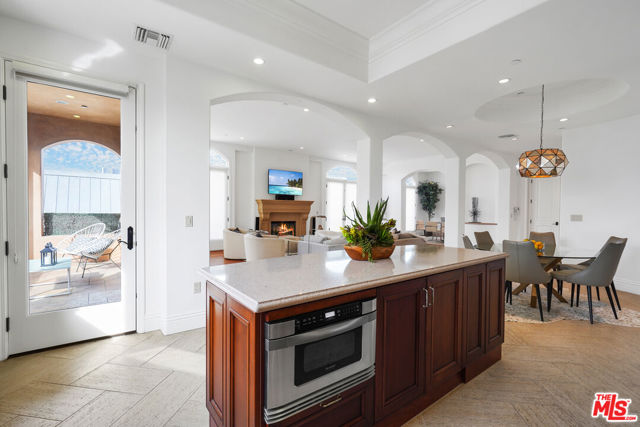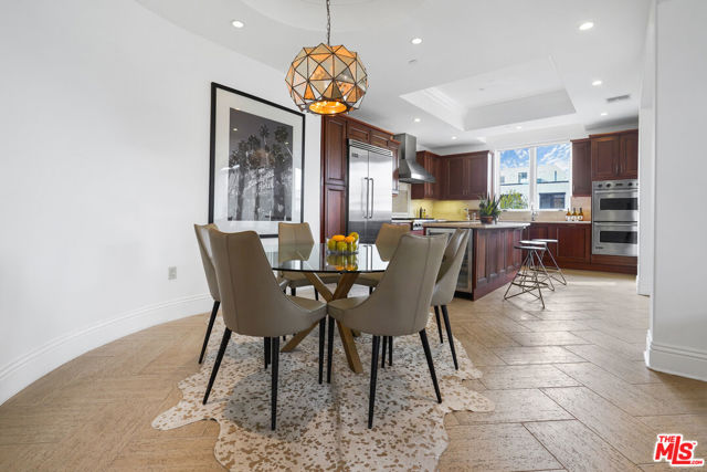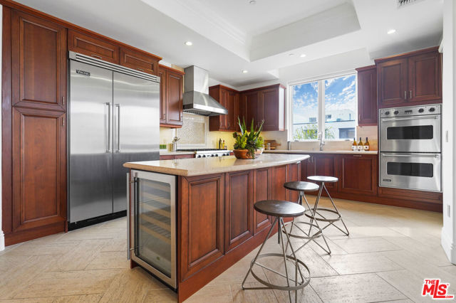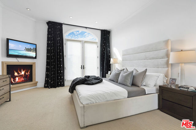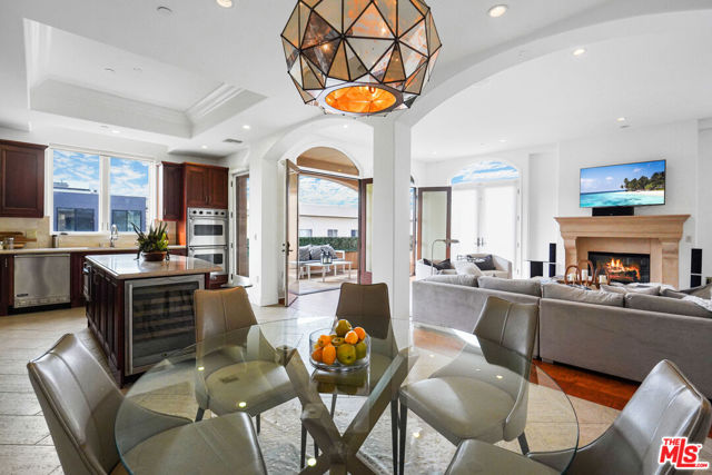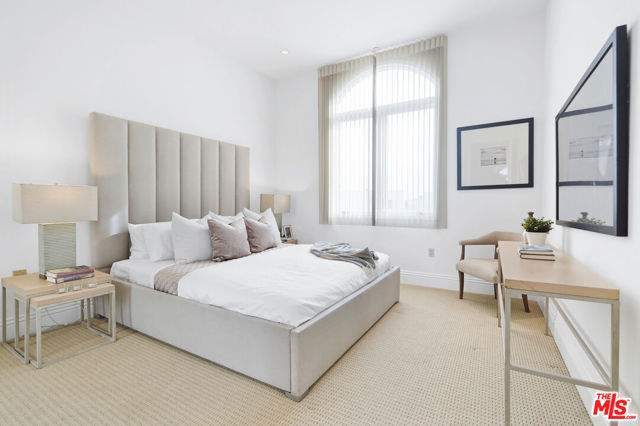 Live in this spectacular top-floor Penthouse unit in a boutique 8 unit building mere steps from Beverly Hills and historic Burton Way. Epitome of luxury living with extra high ceilings (10+ft), high-end finishes, floor to ceiling French doors with tons of natural light from coveted Southern and Western exposure. This executive unit takes up half the Penthouse floor with more than 2,200 living space. Direct entry elevator opens to the foyer with immediate access to modern "great room" layout perfect for large family and friends gatherings. Upgraded kitchen boasts professional Viking appliances, wine fridge and large center island, and opens to spacious living room with fireplace and formal dining room - an entertainer's dream. Grand double doors lead to front-facing terrace with tree-top views and sunsets. Separate bedroom wing has 2 guest bedrooms and huge Primary Bedroom retreat with fireplace, enormous walk-in closet, and sumptuous spa-like bath. Comfort features include hardwood floors throughout, shades on windows, tuned HVAC and full size side-by-side laundry in unit. Incredible location without the zipcode pricing: short stroll or roll to the Beverly Center, high-end Roberston Blvd shopping district, boutiques and restaurants on 3rd street, The Grove/Farmers Market and Cedars Sinai.