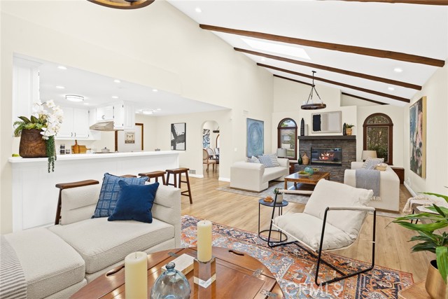 This home is located in North Arcadia, above Orange Grove, in a very desirable location, directly across from Highland Oaks Elementary School. As you enter, you’re welcomed by a formal living room and dining room, leading into a spacious great room with a fireplace, vaulted ceilings, skylights, and a bifold door that opens fully to the backyard, creating a seamless indoor-outdoor living experience. The main floor offers three comfortable bedrooms and a laundry area. Upstairs features a private primary suite with its own balcony overlooking the backyard and pool, plus an additional bedroom with beautiful mountain views. The backyard is well designed with a pool and open space, perfect for relaxing or entertaining. The home has been thoughtfully upgraded throughout, and includes solar panels and an EV charger for modern, energy-efficient living. Overall, it’s a very comfortable and functional home that offers both space and lifestyle.