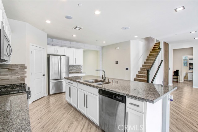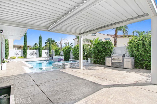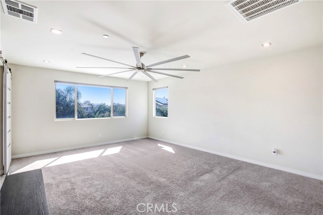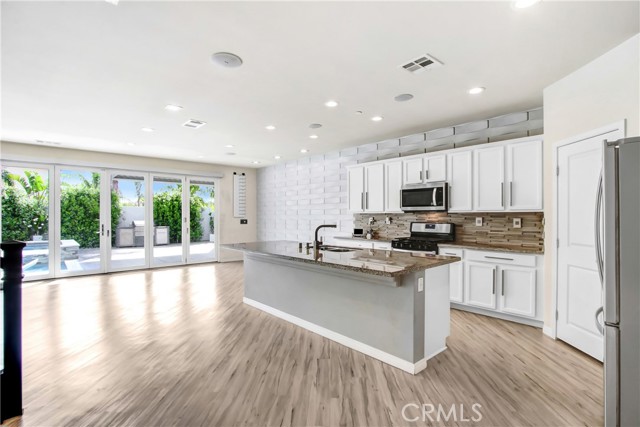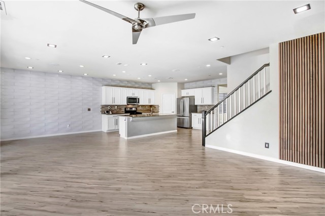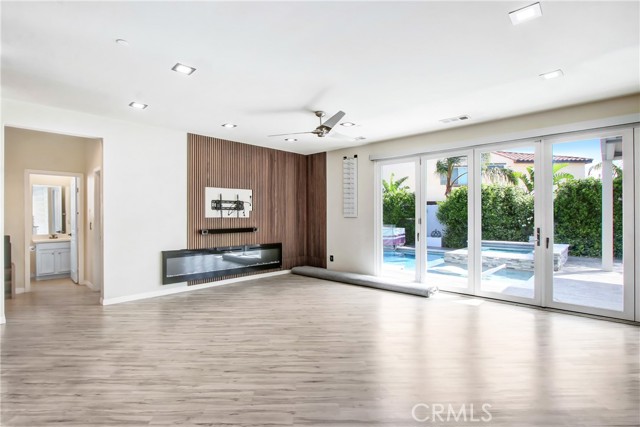 WELCOME HOME to one of North Fontana's most extraordinary homes! From the moment you arrive, the wide driveway, modern landscaping, and striking curb appeal signal this home is different. Step inside and it delivers on every promise. Spread across 2,824 square feet, this 4-bedroom, 3-bathroom home was designed for people who live fully and refuse to compromise. The open-concept main level anchors around a chef's kitchen with granite island, stainless steel appliances, custom tile backsplash, and direct sightlines to the backyard through dramatic bifold glass doors. The living room features a wood slat fireplace accent wall, recessed lighting, and wide-plank luxury flooring that flows through every corner of the main level. Three distinct living spaces give your family room to breathe, gather, and unwind. The primary suite is in a class of its own. A custom barn door opens to an expansive retreat anchored by an oversized statement ceiling fan, a designer black slat accent wall with built-in electric fireplace, and a walk-in closet with floor-to-ceiling mirrors and custom built-in shelving. The en suite bathroom features dual vanities, generous counter space, and a frameless glass walk-in shower. It feels less like a bedroom and more like a private escape. The Secondary bedrooms are bright, spacious, and finished with plush carpet and ceiling fans. A dedicated upstairs laundry room and three full bathrooms complete a thoughtful and functional floor plan designed for real life. Then there is the backyard. A sparkling pool with in-water chaise lounger, a stone-clad spa with spillover feature, a built-in stainless steel BBQ station, and a louvered aluminum patio cover create an outdoor living experience most people only encounter at five-star resorts. Italian cypress trees, mature palms, lush privacy hedging, and custom lotus wall art frame a space that is as peaceful as it is impressive. Summer weekends will never be the same...and I think you'll be hosting all the get-togethers from this point forward. This beautiful residence is minutes from Sierra Lakes Golf Club, Victoria Gardens, Ontario Mills, and the 210 and 15 freeways. Assigned schools are close by as well as endless amenities in the region. Come see this home before it is gone! This one will not last!