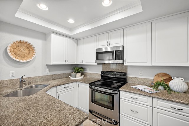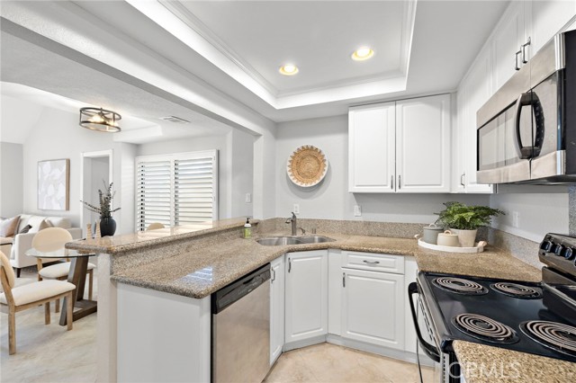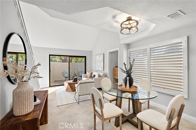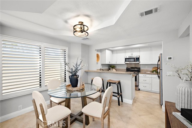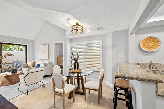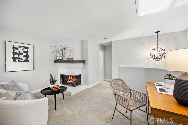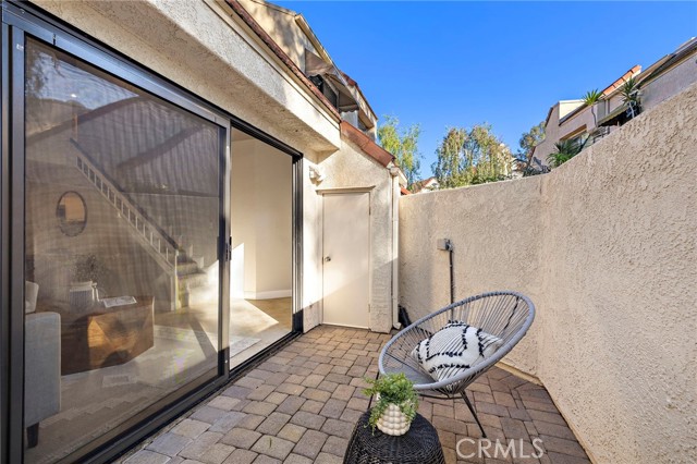 There is something undeniably special about this residence in Crystal Cay. As the community’s most coveted end unit and its largest floor plan, the home immediately sets itself apart with light, volume, and a rare sense of breathing room. It is also the only property in the neighborhood to offer a full wraparound patio, an outdoor extension of the living space that feels made for slow mornings, unhurried evenings, and everything in between. Inside, the main level is bright and airy, grounded by vaulted ceilings, a skylight, and an intuitive layout that feels effortless from the moment you arrive. The kitchen features white shaker cabinetry, stainless steel appliances, and granite counters. One of the bedrooms is thoughtfully positioned on the main level, providing welcome versatility for guests or multigenerational living. The home has been fully repiped, and the carpet is less than one year old, offering peace of mind and a truly move in ready experience. Upstairs, the loft opens with a sense of volume and character. A fireplace anchors the space, while a dedicated closet makes it easy to imagine this as a third bedroom, office, or a quiet retreat at the end of the day. The second bedroom continues the home's composed aesthetic with abundant light and an adjoining dressing area and bath. Crystal Cay itself is known for its tree lined pathways, gentle coastal air, and a relaxed rhythm that feels distinctly Southern California. Residents enjoy two pool and spa areas and nearby walking trails. Across the street, a convenient shopping village offers dining, retail, and daily services, and freeway access is within five minutes. Downtown Dana Point, Dana Point Harbor, and Salt Creek Beach are all just five miles from your door, placing you in the heart of exceptional coastal recreation, shopping, dining, and everyday convenience. This end unit brings together the comforts of thoughtful interior design with an outdoor experience rarely found in the community, offering a lifestyle shaped by ease, connection, and the natural beauty of coastal Southern California.