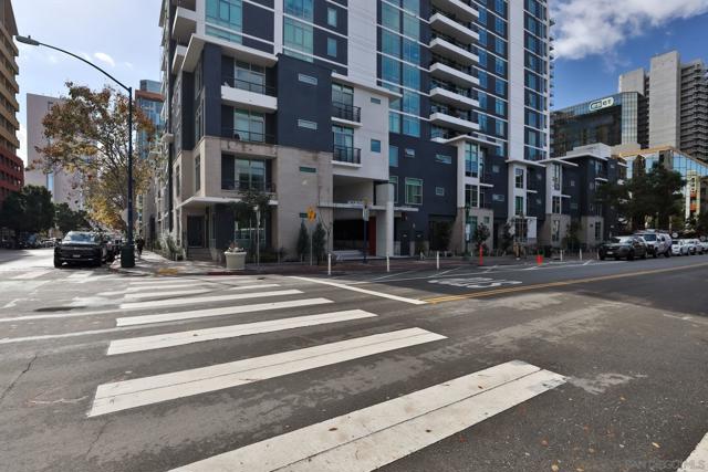 Stylish, centrally located 2-bedroom condo in the premium Acqua Vista complex! Situated in the heart of Little Italy, this home's spacious layout opens onto a sleek, upgraded and modern kitchen with contemporary finishes. Its dedicated dining area flows into the bright living space. The interior courtyard location allows for added privacy and a quieter atmosphere. The large primary bedroom includes a generous walk-in closet, while the in-unit laundry creates added convenience. Residents of Acqua Vista enjoy upscale amenities, including 24-hour security, a community attendant in the lobby, and valet parking. Recent HOA upgrades have transformed the building with new designer-selected interiors, fresh exterior paint, lush landscaping, upgraded carpeting, and curated artwork throughout. The completely renovated pool and spa area now offers fire tables, cabanas, lounge seating, and BBQ stations, all perfect for entertaining. Step outside to explore Little Italy’s vibrant mix of cafes, fine dining, weekend farmers markets, and scenic waterfront. With quick access to the 5 freeway, this coveted location keeps you close to everything San Diego has to offer.