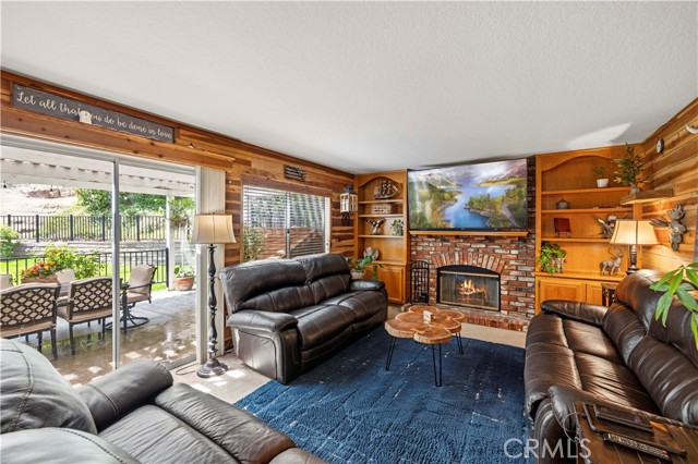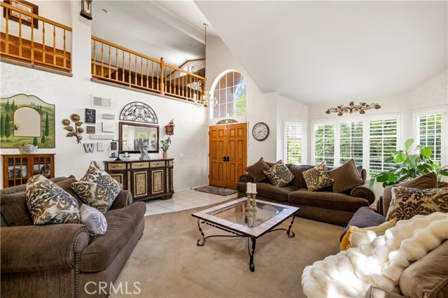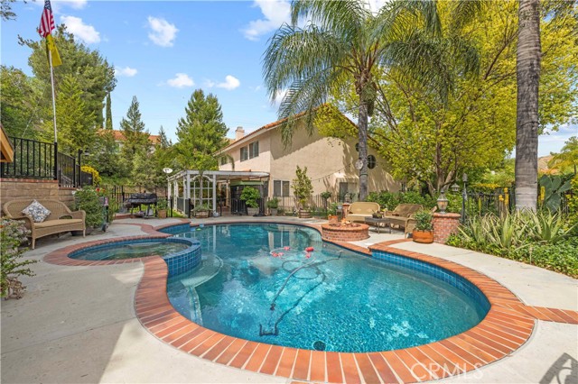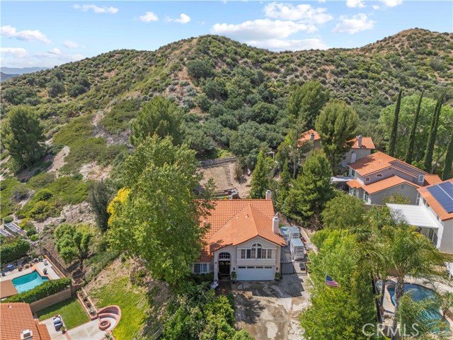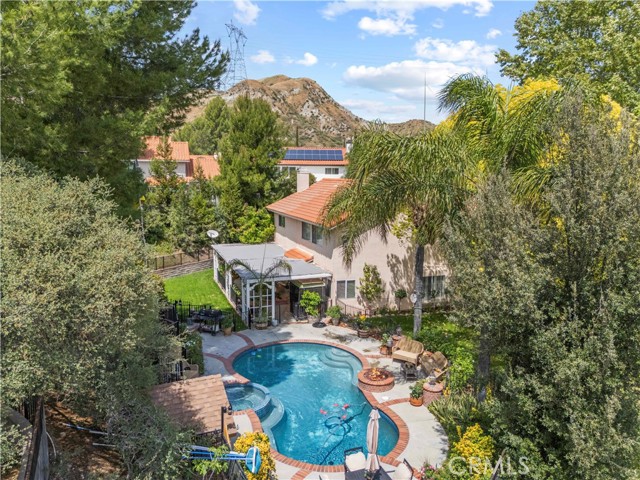 Your opportunity awaits to own an expansive, private retreat with an entertainer's dream backyard you'll never want to leave! Tucked away on a flag lot, you'll love the approach to the home with mature trees, a charming front courtyard with a stone-paver seating area, PLUS plenty of parking space for your vehicles, toys, and RV or motorhome! Inside, the home opens to a bright formal living room designed for easy gathering. The formal dining room features a stylish tray ceiling, striking chandelier, and a warm wood-plank accent wall. The kitchen offers plenty of space with warm wood cabinetry, a built-in range, granite island, backyard views, and an easy flow to the family room. Cozy up around the family room fireplace with custom built-ins, and sliding glass doors to the patio. A main-floor bedroom and full bath add flexibility for multigenerational living, guests, or a dedicated home office, plus a convenient indoor laundry room. Upstairs, the expansive primary suite offers high ceilings, a walk-in closet and a relaxing ensuite with dual vanities, soaking tub, and separate shower. Two additional bedrooms plus a full bathroom provide plenty of space, and a large loft with fireplace provides even more versatility. The backyard is made for hosting and making memories with an expansive covered patio, a raised brick planter centerpiece, multiple seating areas, and surrounded by greenery. You'll love the sparking pool and spa with hillside views, conversation fire pit, space for patio seating, and access to a built-in brick BBQ area with low maintenance turf. Perfect for outdoor dining, play, and weekend lounging. With space, privacy, and endless possibilities, this is the kind of home that feels like a lifestyle!