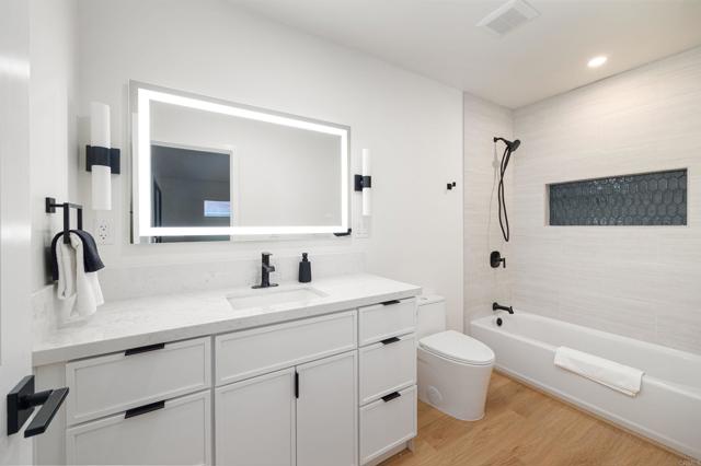 Fully reimagined from top to bottom, this North Park gem offers a thoughtfully upgraded living experience. The light-filled floor plan flows seamlessly from the modern kitchen into the living and dining areas. The redesigned lower level adds a third bedroom with its own ensuite bath and direct patio access. All three bathrooms are artfully finished with custom shower surrounds. The attached garage goes beyond storage, offering a full laundry setup complete with a sink and built-in cabinet and countertop. Owned solar keeps utility costs low, while French drains, custom concrete, and gutters protect the property year-round. Set on a rare private canyon lot, the outdoor space offers a sense of tranquility that’s hard to find in the city. Located on a quiet street with minimal through traffic and ample parking, this home also delivers unbeatable walkability—just steps to Morley Field’s tennis courts, disc golf, and trails, and less than half a mile to the vibrant cafes, breweries, and restaurants along 30th Street. Balboa Park is just minutes away. Turnkey, stylish, and perfectly positioned—this is North Park living at its finest. This property is turnkey and exactly where you want to be.