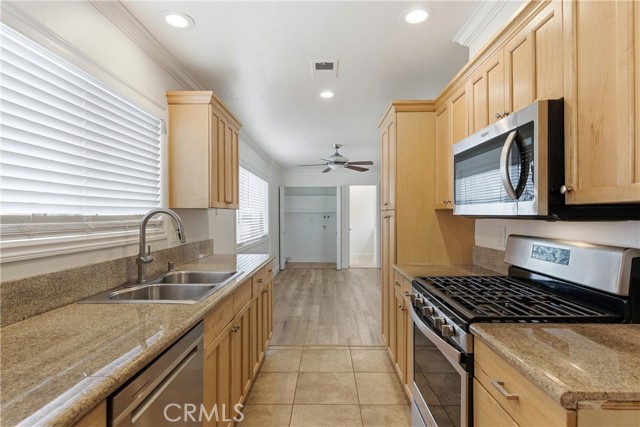 Phenomenal and rarely available end unit home in the Yorktown Villas neighborhood! This 3 bed/ 1.5 bath unit boasts 1,176 sq ft of living space and is completely remodeled and BRAND NEW AIR CONDITIONING, vanities, shower, and flooring! No shared walls with immediate neighbors other than a stairwell on the side so it truly feels as closed to a detached home as you can possibly get with a condo. Some of the features include: Google Doorbell, Nest/Google Thermoset, brand new vinyl flooring upstairs, granite countertops and stainless steel appliances in the kitchen, turf in the private yard, ceiling fans in every bedroom and main area, recessed lighting, brand new interior paint, spacious private patio in rear, one car garage, private parking spot with direct access to the unit, dual paned windows and slider with additional UV tint added to each.
