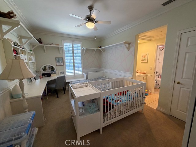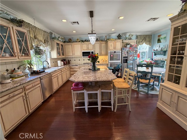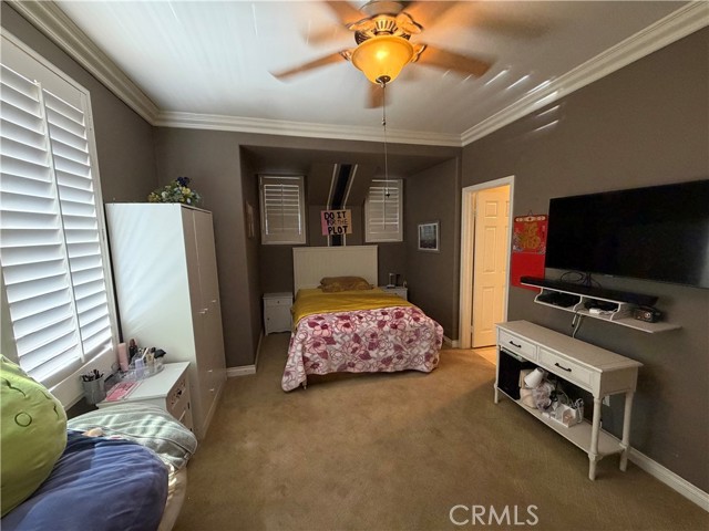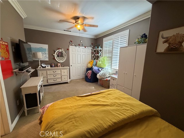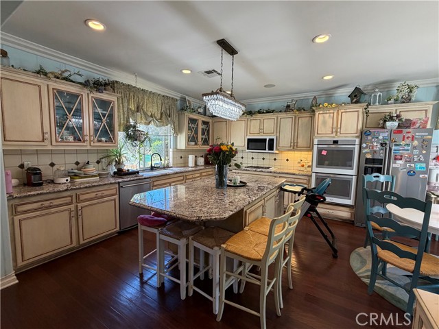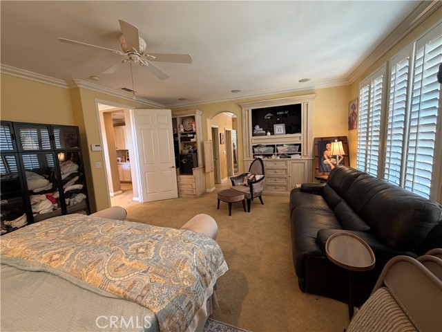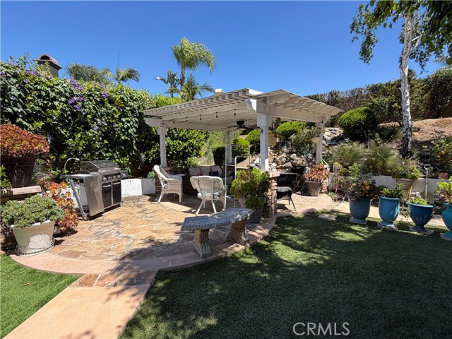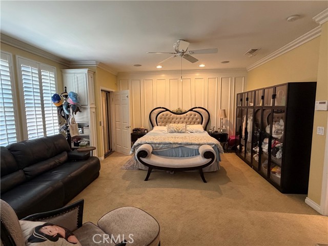 GOOD SCHOOL DISTRICT ! Stunning CUL-DE-SAC home with PAID SOLAR AND AN ELEVATOR; beautiful front yard; a sprawling front porch with French doors opening from the living room; the front door opens to hardwood flooring and into the living room offering a fireplace; crown molding throughout and plenty of windows allowing in natural light; continue through to a formal dinning room offering a crystal chandelier; flush surround speakers; and French doors to a cozy courtyard; built-in BBQ; the courtyard is also accessible from the kitchen which features updated cabinetry, granite countertops; a large center island with chandelier and seating; a breakfast nook; walk-in pantry; built-in desk; and is wide open to the family room; the family room also features hardwood floors; a built-in entertainment center; plantations shutters; ceiling fan; five surround speakers; elevator access upstairs a master bedroom with built-ins; surround sound; and elevator access; the remodeled master bathroom features dual sinks; a jetted tub with chandelier; custom walk-in shower with frameless glass enclosure; huge walk-in closet; and private bathroom; three additional bedrooms upstairs; one has its own suite bathroom and additional bedrooms with their own sink area connected with a jack & jill bathroom; the peaceful backyard features a covered patio; water features; a variety of landscaping on the hillside backdrop; and a grass area.
