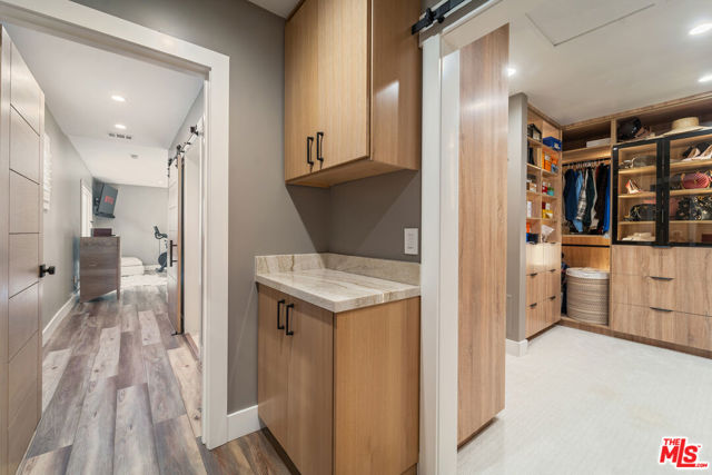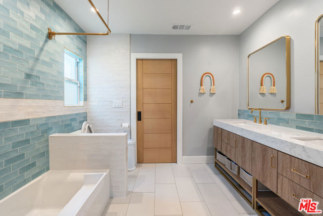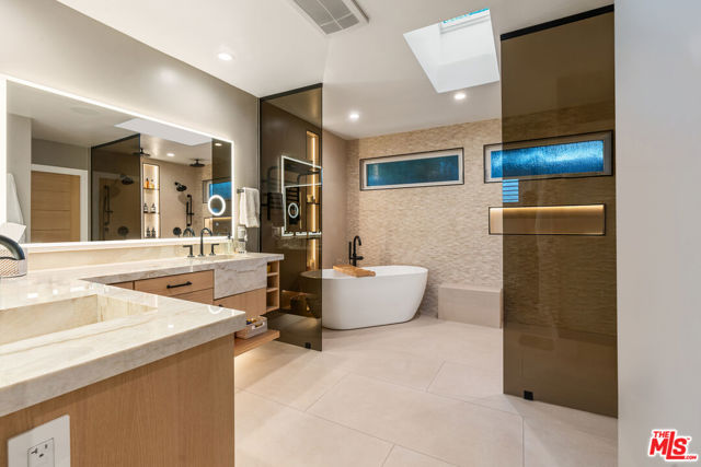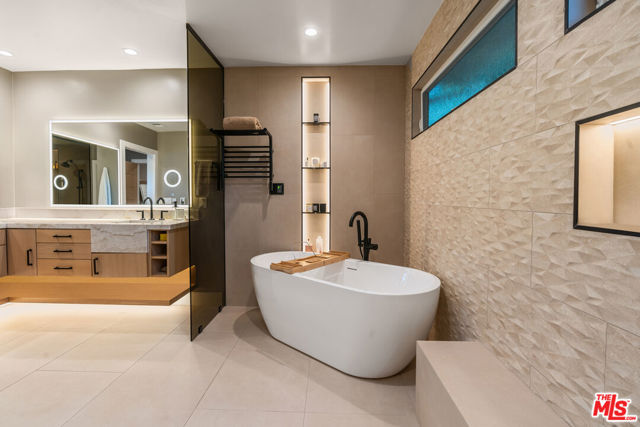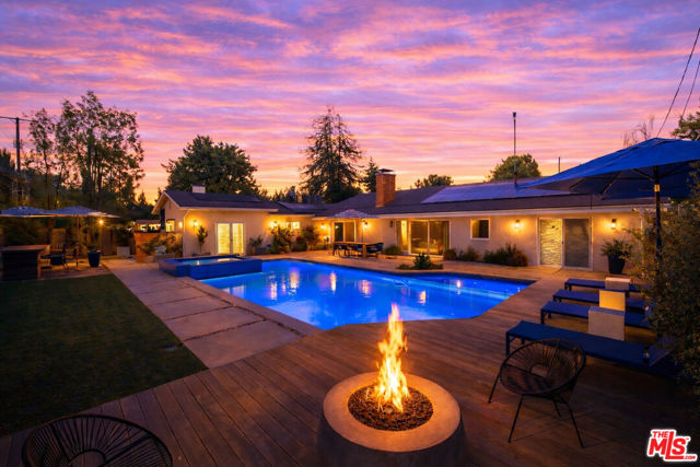Originally designed by renowned architect Charles Du Bois, A.I.A., this iconic Woodland Hills residence has been completely reimagined and rebuilt into a true modern compound. Envisioned as the sellers' forever home (NOT A FLIP), more than $1.5 million was invested to reconstruct and elevate this Mid-Century masterpiece with uncompromising craftsmanship, cutting-edge technology, and the finest materials throughout. Beyond the striking architectural presence and custom double-gated entry, the property offers exceptional privacy and security, thoughtfully designed as an ultra-secure retreat. Nearly every system in the home is new including electrical, plumbing, sewer lines, roof (fully insulated), dual HVAC systems, tankless water heater with recirculating system, OWNED solar, and hardwired internet in every room. A Hydrawise fire-suppression roof sprinkler system, French drain system, dual camera systems (hardwired and WiFi), full alarm system, and comprehensive mesh WiFi coverage inside and out ensure safety, performance, and peace of mind at every level. Inside, the open-concept layout honors Du Bois' timeless design while seamlessly integrating modern luxury. The chef's kitchen is a showpiece, appointed with premium Taj Mahal Quartzite countertops, custom hardwood cabinetry, induction cooktop, double ovens, custom under-cabinet lighting, and top-tier appliances designed for both elevated entertaining and everyday living. Sonos audio flows throughout the home and backyard, creating a fully integrated lifestyle experience. The dramatic fireplace has been completely rebuilt with five imported Italian porcelain slabs and features an automatic fire starter, anchoring the main living space with warmth and architectural sophistication. Every bedroom has been thoughtfully reconfigured to connect directly to a bathroom, enhancing both comfort and functionality. The primary suite offers a spa-like retreat with heated floors, skylight, custom walk-in closet, and an architecturally curated bath. Outdoors, the private resort-style grounds rival luxury estates. The saltwater pool and spa offer a rare dual-function system transform the jacuzzi into a heated spa or a revitalizing cold plunge. A custom smart-controlled fire pit, outdoor bar and dining area, designer outdoor shower, and integrated sound system create the ultimate entertainer's setting. This is not simply a remodel it is a full-scale reinvention of a Charles Du Bois classic into a secure, technologically advanced, design-forward sanctuary. Located in one of Woodland Hills' most desirable enclaves near top-rated schools, premier shopping, and dining and just minutes to Calabasas and Westfield Topanga this is a rare opportunity to own a legacy architectural property rebuilt for the future.