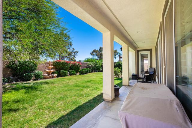 This long-term furnished Marea plan blends comfort and sophistication just minutes from the Santa Rosa Clubhouse and its full suite of resort-style amenities. Offering 2 bedrooms and 2 bathrooms across 1,359 sq. ft. of polished interior living, the home welcomes you with an inviting great room featuring a custom TV/media niche and a charming tile-framed fireplace. Plantation shutters elevate every space, while the adjacent kitchen shines with stainless steel appliances, granite countertops, a breakfast bar, gas range, built-in microwave, and a convenient pantry. The guest quarters include a well-appointed bath with a shower-over-tub layout, while the primary retreat impresses with plank flooring, a French door to the patio, and an en suite showcasing a generous tiled shower, dual vanities, and a spacious walk-in closet. Outside, a tranquil backyard oasis awaits with a covered patio and lush, professionally designed landscaping--perfect for peaceful relaxation or effortless entertaining. Available on an annual basis. This is not a vacation or short-term rental.