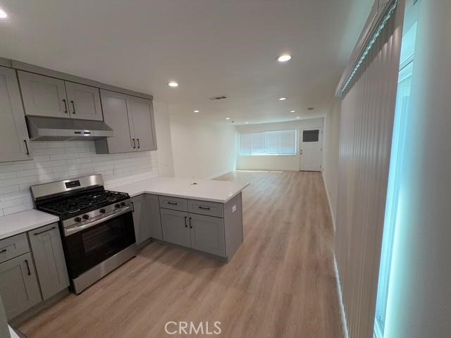 Welcome to this elegantly newer renovated 3-bedroom, 2-bathroom home located in the heart of a highly desirable Buena Park neighborhood with Central Heat and Central A/C. This charming residence offers modern upgrades throughout and includes a 2-car garage with an automatic garage door opener. Step inside to find newer vinyl flooring throughout the main living areas, complemented by tile flooring in both bathrooms. The updated kitchen is a true highlight, featuring an oversized island, sleek modern cabinetry, quartz countertops, a freestanding gas range with range hood, dishwasher, and a brand-new stainless steel refrigerator. Both bathrooms have been tastefully remodeled with updated tubs and showers, stylish vanities, and newer tile flooring. Recessed lighting enhances every room, and the entire interior has been freshly painted, creating a bright and inviting atmosphere.Ideally located near shopping, dining, schools, banks, and with convenient freeway access, this home offers both comfort and convenience. Don’t miss the opportunity to see this lovely home in person and make it your own!