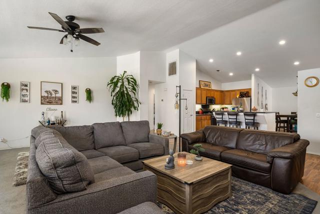 Situated on a desirable corner lot in Montecello II, this home offers comfort and versatility just two blocks from the La Quinta city limits. Thoughtfully designed, the property features vaulted ceilings, an inviting fireplace, expansive sliding glass doors, abundant natural light, and a spacious three-car garage with additional RV parking--perfect for all your lifestyle needs. As you approach the home, you'll pass the attached fourth bedroom/casita, complete with its own private entrance and bathroom--ideal for hosting out-of-town guests or creating a secluded home office. Inside, you're welcomed by an open-concept living and dining area with a seamless transition to the backyard, creating a bright and airy setting ideal for both everyday living and entertaining. The home showcases numerous upgrades throughout, including granite countertops, stainless steel appliances, maple cabinetry, and a tasteful mix of laminate, wood, and carpet flooring. The expansive primary suite occupies its own private wing, featuring a large walk-in closet and a spacious en-suite bathroom for added comfort and privacy.Outside, the nicely landscaped yard is easy to maintain with gardening service included, allowing you to relax and enjoy your surroundings. This home offers the perfect blend of flexible living space and exceptional curb appeal--ready for you to move in and make it your own. Bonus: Owned Solar, Low HOA, and Located in IID for lower-cost electricity!