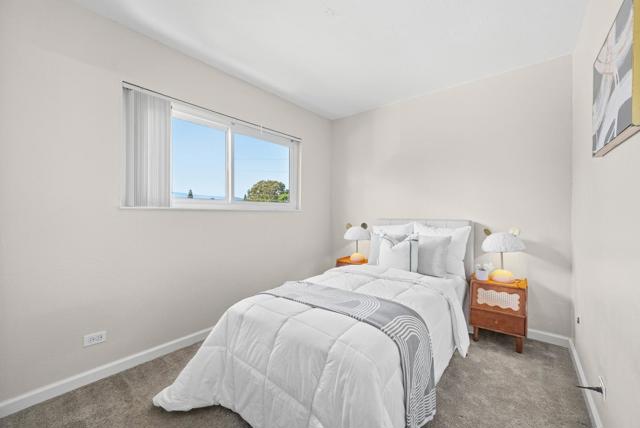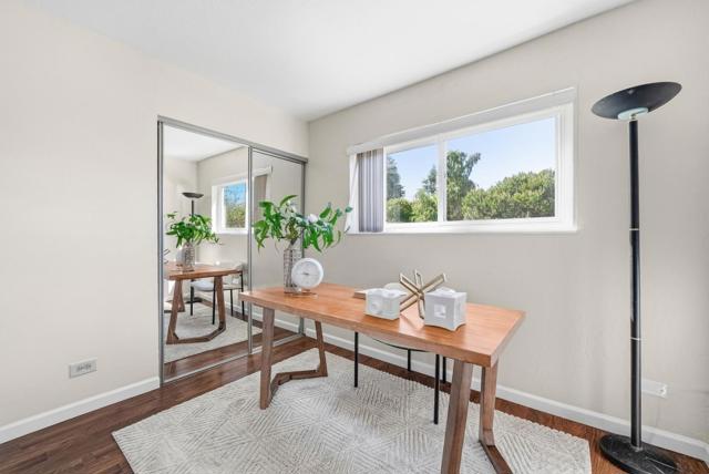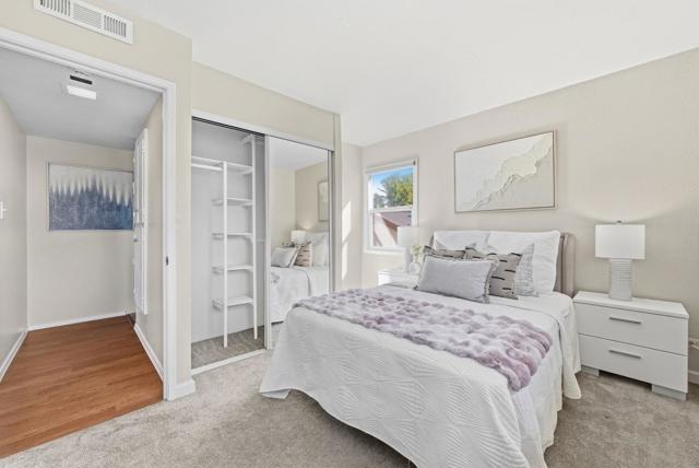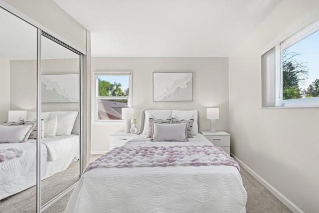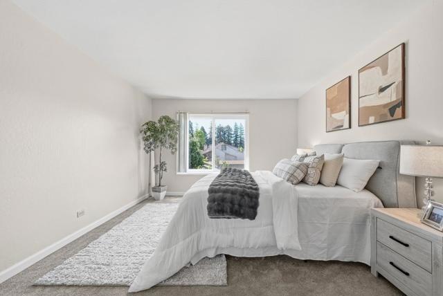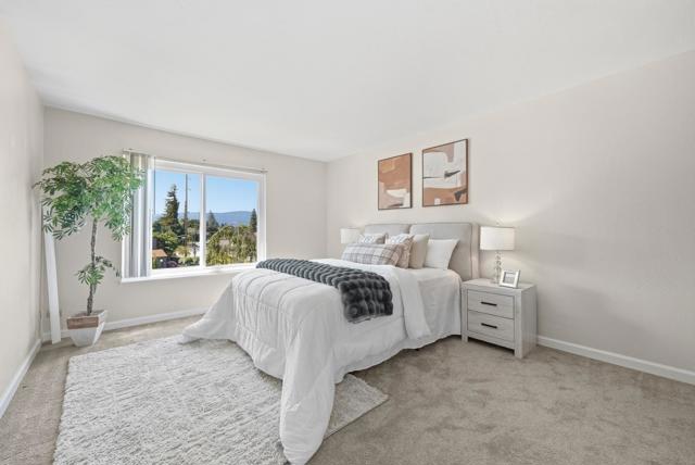 Spacious and updated 4-bedroom, second-floor end-unit condo in the heart of Mountain View featuring a flexible floor plan with one bedroom on the main level, ideal for guests or a home office. The inviting living room offers laminate wood flooring and abundant natural light, while the spacious eat-in kitchen showcases granite countertops, ample cabinetry, and seamlessly connects to the dining area and a sunny private balcony through sliding glass doors-creating a perfect indoor-outdoor flow with excellent natural light and pleasant views. Updated bathrooms add modern comfort and style. Upstairs features three bedrooms with plush carpeting, including a generous primary suite with an additional sitting area. Enjoy the convenience of inside laundry. Centrally located near shopping, top-rated schools, and with easy access to freeways and expressways