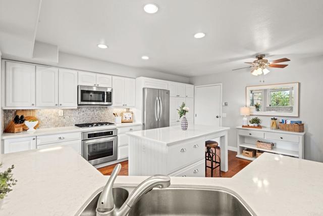 Welcome home to this beautifully updated corner-unit townhome in the highly sought-after Collage community of Carmel Mountain Ranch. Thoughtfully renovated throughout, including the kitchen and bathrooms, this home offers the perfect blend of modern style and everyday comfort. Filled with natural light, the spacious floor plan features soaring vaulted ceilings and an open layout ideal for both relaxing and entertaining. The inviting living room flows seamlessly to a sunny private patio and is anchored by a cozy fireplace—creating a warm and welcoming space to unwind. The generously sized primary suite includes a walk-in closet and an updated en suite bath. Additional highlights include upstairs laundry, a two-car attached garage, and ample guest parking. Residents of Collage enjoy access to two pools, playgrounds, and barbecue areas, all within a quiet, well-maintained community. Located in the award-winning Poway Unified School District and just minutes to Carmel Mountain Plaza, Trader Joe’s, Costco, Target, dining, and the Angelika Film Center—with easy access to the 15 and 56 freeways—this home truly offers convenience, comfort, and location.