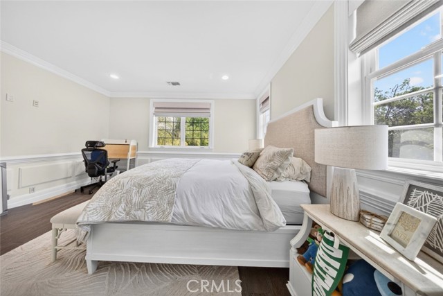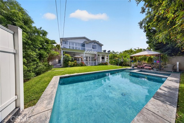 Experience elevated living in this stunning two-story residence located in the heart of North Hollywood. Built in 2014, this expansive 5 bedroom, 5.5 bathroom home offers approximately 3,821 square feet of beautifully designed living space, blending elegance, comfort, and functionality. Inside, soaring ceilings, intricate coffered details, rich wood flooring, and an abundance of natural light create a bright and inviting atmosphere throughout. The open concept layout features multiple living and dining areas, ideal for both everyday living and entertaining. The chef's kitchen serves as the centerpiece of the home, complete with a large center island, high end appliances, custom cabinetry, and seamless flow into the main living spaces. Detailed staircase lead up to the second floor with high vaulted ceilings & large bedrooms. The luxurious primary suite offers a cozy fireplace, a custom designed walk in closet, and a private balcony, complemented by a spa inspired bathroom featuring dual vanities, a soaking tub, and an oversized walk-in shower. French doors open to a private backyard retreat designed for both relaxation and entertaining, featuring a sparkling pool and spa, lush landscaping, and a covered patio with a fireplace and built in BBQ, perfect for outdoor dining and lounging. No detail was overlooked in this immaculate home, thoughtfully designed with exceptional craftsmanship, high end finishes, and a seamless blend of comfort and sophistication throughout. Additional highlights include an attached 2 car garage, dedicated laundry room, and ample storage throughout. Ideally located near shopping, dining, and major studios, this exceptional lease opportunity offers both convenience and upscale living in one of North Hollywood's most desirable neighborhoods. This property is fully furnished with stylish furniture and essential amenities, offering a comfortable and move in ready living experience. Welcome Home!