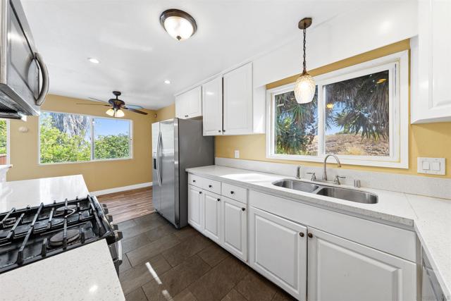 Welcome to 8808 Leigh Avenue, a beautifully maintained two-level home in Spring Valley! This 4-bedroom, 2-bathroom residence offers comfort, space, and great entertaining potential. As you enter, you are greeted by a bright formal living room with recessed lighting. The bathrooms and kitchen appliances have been updated, and all windows were replaced in 2017. The home also features fresh interior paint completed in 2025. French doors lead from the living room to a private balcony where you can enjoy city views and fireworks. Additional highlights include a spacious 573 sq ft basement and a 303 sq ft covered patio—perfect for entertaining or relaxing outdoors. This well-kept home is conveniently located near shopping, dining, and entertainment, with easy access to major freeways. Don’t miss this fantastic opportunity to own a move-in ready home with so much to offer!