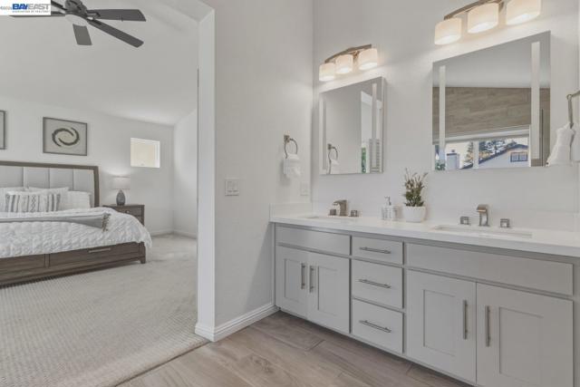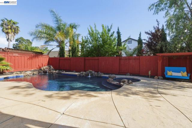 North-facing, spacious 5-bedroom home featuring a desirable main-level bedroom and full bathroom with a standing shower, ideal for guests or multigenerational living. The bright interior has been freshly painted and offers a well-appointed kitchen with quartz countertops, a decorative backsplash, a gas range, and stainless steel appliances. A newly installed HVAC system enhances year-round comfort and energy efficiency throughout the home. Upstairs, the expansive primary suite includes a private deck, a walk-in closet with custom organizers, and an ensuite bath showcasing floor-to-ceiling wood-look tile, quartz counters, and a large soaking tub for a spa-like retreat. This smart home is equipped with Wi-Fi enabled controls for the pool, sprinklers, outdoor lighting, and thermostats. The oversized backyard is designed for enjoyment and entertaining with an in-ground pool and spa, lush landscaping, and exceptional privacy. Rare, oversized side-yard access provides ample space for boat or RV parking and is complemented by large custom storage sheds on both sides of the property. Additional highlights include a 3-car garage and a functional layout that supports both comfortable daily living and effortless entertaining. Conveniently located close to a Montessori school and a neighborhood park.