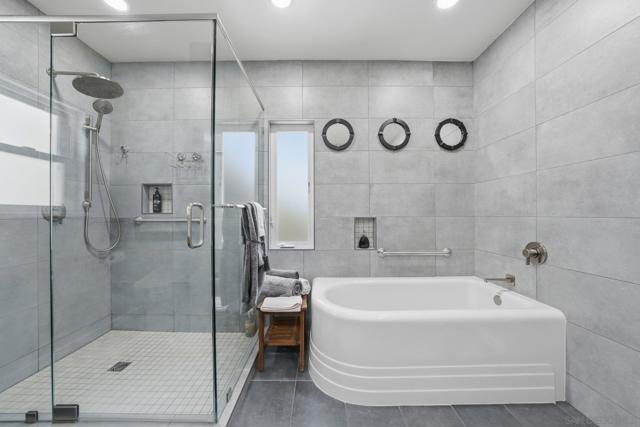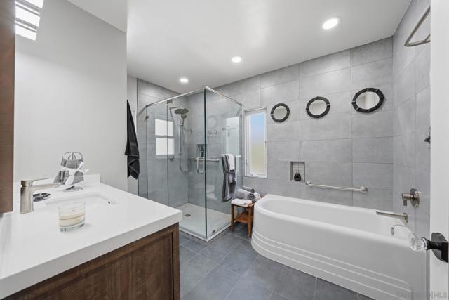 Exquisite 1930 Spanish Bungalow. Nestled along the sun drenched hillsides of Point Loma—one of San Diego’s most coveted enclaves—this impeccably preserved 1930 Spanish Bungalow offers a rare fusion of architectural heritage, refined upgrades, and breathtaking views from added back porch, creating a living experience that feels both timeless and extraordinary. Upon arrival, the property’s meticulously maintained landscaping and classic Spanish character set an elegant tone. The outdoor spaces unfold across multiple levels, each designed to capture the region’s natural beauty. This exceptional residence blends historic charm with contemporary comfort, offering a rare opportunity to own a piece of Point Loma’s architectural legacy—enhanced for modern luxury living. The home’s newest jewel is the 100 sq. ft. Ensuite Bathroom Addition, completed in 2025. This spa inspired retreat showcases a low threshold walk in shower with a ½ inch frameless glass surround, a separate soaking tub, heated flooring, and a white quartzite vanity with undermount sink. A premium TOTO Drake Washlet toilet with bidet seat (remote and manual included) completes the experience. Notable Enhancements & Modern Conveniences • New roofing surface, dual attic fans, and a 16 panel solar system (July 2021) providing robust household power • Samsung Dishwasher (Nov 2020) • Samsung Washer & Dryer (Apr 2021) • HVAC System (Sept 2021) • Fireplace insert with blower and remote (June 2022) • Under floor insulation (Aug 2023) • Foundation seismic retrofit (May 2025) This exceptional residence blends historic charm with contemporary comfort, offering a rare opportunity to own a piece of Point Loma’s architectural legacy—enhanced for modern luxury living.