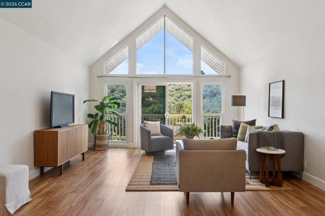 Refined top-floor residence offering an elegant blend of comfort and sophistication. Soaring ceilings and expansive windows bathe the interiors in natural light, framing tranquil views of the Moraga hills. The thoughtfully designed floor plan features bedrooms and two full baths, complemented by a tastefully updated kitchen characterized by quality finishes and stainless steel appliances. A sunny balcony provides a serene setting for morning coffee or evening relaxation. Complete with dedicated carport parking and conveniently located laundry, this home is ideally positioned near top-rated schools, local shopping, and Moraga’s scenic trails and parks—delivering a lifestyle of ease and quiet luxury. Open House on Sunday April 19th at 2:00-4:30pm.