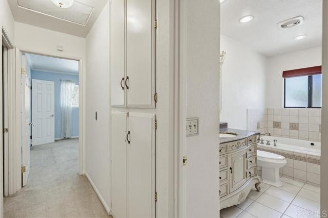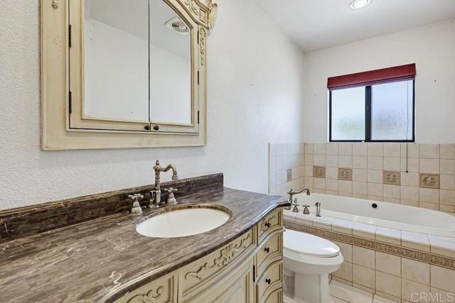 Nestled on hilltop cul-de-sac, this single-level home sits on a large quarter acre lot and is full of potential. Inside, the light-filled living room boasts soaring ceilings and a cozy fireplace. The kitchen features granite countertops and opens to the spacious addition. The addition is complete with a built-in bar, plenty of room for entertaining, and a large office nook. On the opposite side of the home, the primary suite offers a large walk-in closet and ensuite bath. The sprawling U Shape backyard offers ample space for gardening, entertaining and enjoying the Southern California sun. Located near Hilltop Elementary on a quiet residential street and within 30 minutes of San Diego's beaches, the bay, the airport, and countless attractions, this is a rare opportunity to plant roots in a well-positioned home and make it entirely your own.