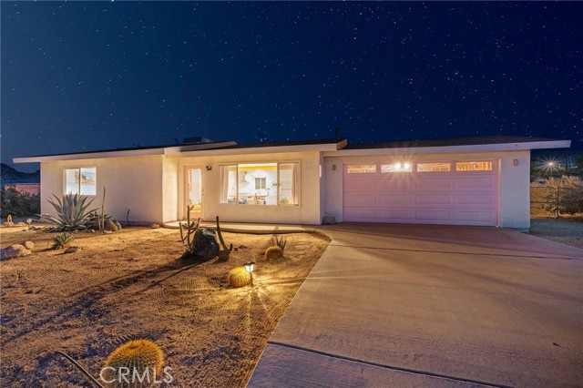 Available for lease, this charming unfurnished 2-bedroom, 1-bath home is ideally located in Joshua Tree, just moments from the national park entrance and downtown. Enjoy sweeping views of the mountain ridge and twinkling city lights in a peaceful desert setting. The home includes a washer, dryer, stove, dishwasher, and refrigerator for added convenience. An attached two-car garage offers secure parking and extra storage. The private backyard features a tranquil garden setting with a soaking tub and is enclosed with chain-link fencing. Conveniently located near Yucca Valley, Pioneertown, and Twentynine Palms, with easy access to local dining, shopping, and outdoor adventures. A wonderful opportunity for a full-time residence or desert retreat. Lease Details: Unfurnished No utilities included One pet allowed, maximum 25 lbs
