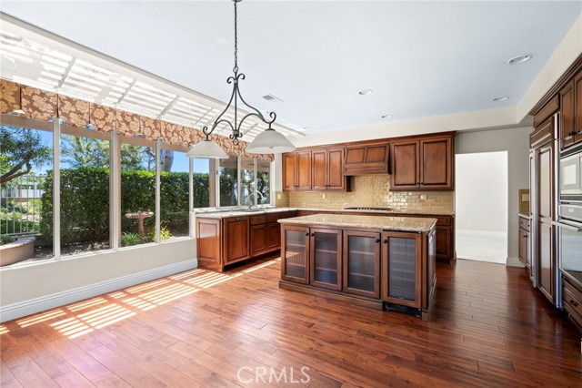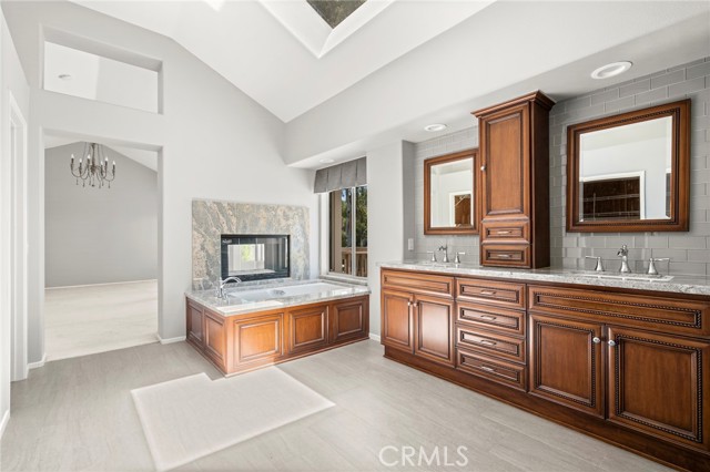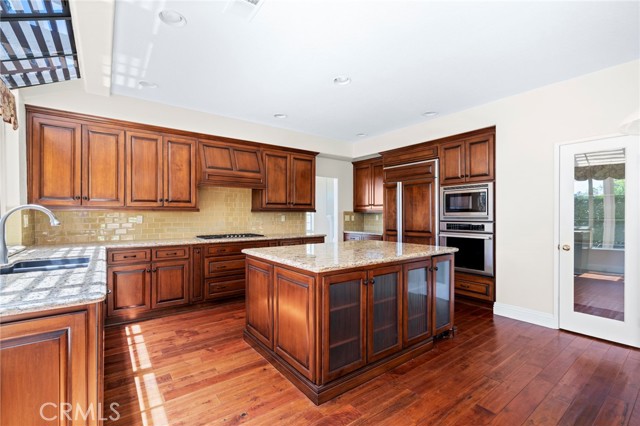 Welcome to the beautiful hilltop community of Portola Hills. Located on a quiet Cul-de-Sac this home is the largest J.M. Peters model on an oversized lot. The attention to details starts from the moment you arrive. As you enter into the living room, notice the high ceilings, custom flooring and fireplace along with large windows for lots of natural light and flows into your dining area with double doors leading to your backyard. The large kitchen features a large island with a built-in refrigerator, custom cabinets, granite counter tops, new backsplash, new flooring and lots of windows looking onto your backyard. The kitchen flows into the family room with another fireplace and looks out onto your patio area. Downstairs also includes a bedroom with attached full bathroom, office with built-in cabinets and shelving, a large laundry room with sink along with a guest powder bath. The master bedroom has high ceilings, an updated fireplace, a large walk out deck for morning coffee or after work relaxation with great views and flows into the updated custom master bathroom with walk in shower, large skylight, soaking tub and a large walk-in closet. Upstairs also includes two additional bedrooms, updated bathroom and large bonus room with double door entry is perfect for the kids play area or family time. The HOA features a large pool, jacuzzi, kids pool, sand volleyball court, tennis court, work out room and gathering area. Close to award winning Portola Hills elementary school and Concourse Park. Minutes from great restaurants, entertainment and shopping.