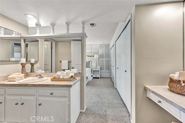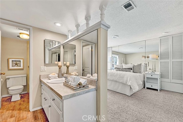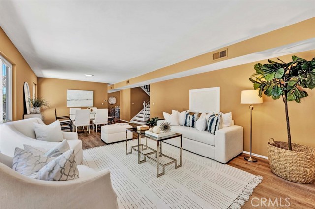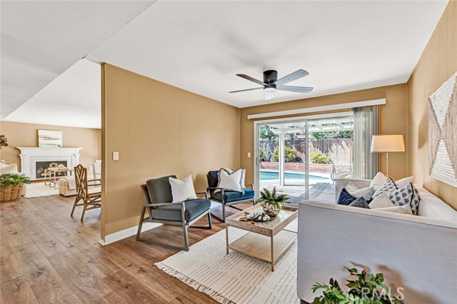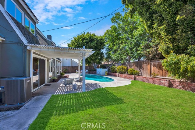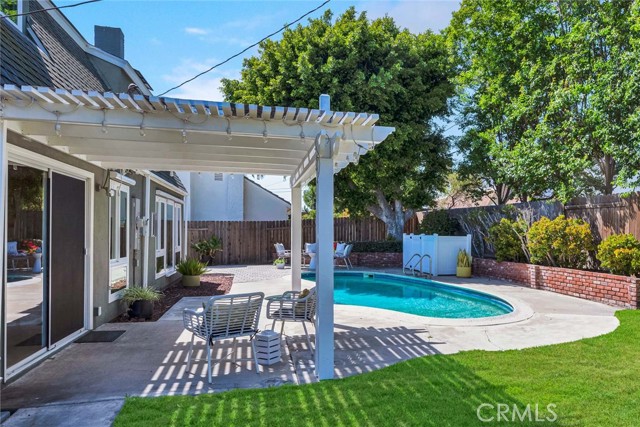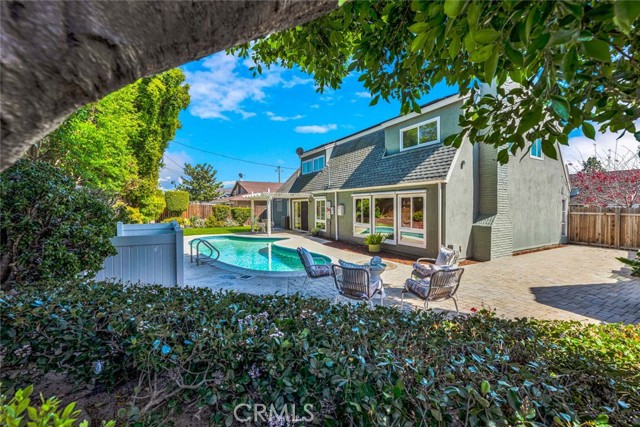 Classic pool home with main floor primary bedroom/bath suite and exciting possibilities for creating a larger second primary suite or bonus area on the second level! Fully owned solar system, newer ceramic tile and luxury wood vinyl flooring, dual pane windows, paver hardscape, HVAC system, fencing and more! Located on a cul de sac in the heart of Tustin within Foothill High School boundaries, this home exudes curb appeal and functionality. On the main level, rooms flow seamlessly for ease of entertaining both inside and outside. The back yard has lawn and planter areas, a covered patio, pool and a wide side area with brick pavers for your outdoor enjoyment. All windows and a patio slider have been replaced with quality dual pane windows, most with blinds or roller shades. Large living/formal dining rooms are light filled and offer views of the pool and yard. Newly painted and carpeted primary bedroom. On the second level, you'll find three additional bedrooms and a full bath. One oversized bedroom is adjacent to a large unfinished space that offers the possibility of combining to create a second primary suite or bonus/exercise/hobby area, etc. A finished 2-car garage provides direct entry into the home and features a newer roll-up garage door. The driveway has been widened with paver bricks for extra parking. This home feels tucked away, yet offers the convenience of near-by shopping, dining, schools and transportation. Don't miss it!