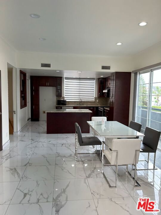 Completely renovated 3 bed 3.5 baths Tri-level townhome located in the Beverly Grove area. This front unit townhome features a vaulted 12' high ceiling living room with a gas fireplace, a skylight over the stairs, and a beautiful kitchen with a large pantry and lots of cabinets. Master suite with a walk-in closet, en-suite bath with a French bathtub, and a private balcony. Nice size guest room has its own bathroom. The 3rd bedroom on the ground level has completed the bathroom remodel. All custom-designed doors and window coverings throughout. Side-by-side washer and dryer included. The unit comes with a private 2-car attached garage with direct access. Just steps away from lots of restaurants, a market, The Grove, The Farmer's Market, LACMA museum.