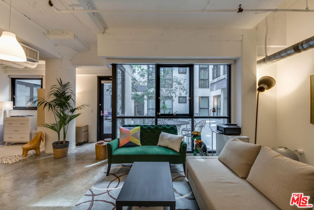 Unique courtyard-facing live/work loft at Grand Lofts. This quiet, below-grade unit is thoughtfully positioned along the interior courtyard, offering enhanced privacy and direct access to additional outdoor space - ideal for those seeking a flexible work-from-home or live/work environment. The layout is open lofts space and lends itself well to creative, professional, or studio use while maintaining comfortable residential living. Inside, the loft features 10+ foot ceilings, floor-to-ceiling windows, original concrete columns with exposed A/C ducting, concrete floors, and a well-appointed kitchen with stainless steel appliances. A generous walk-in closet and in-unit laundry add everyday convenience. Enjoy close proximity to Social District dining, Crypto.com Arena and L.A. Live, Whole Foods, FIDM Park, Pico Metro Station, and more. Two side-by-side parking spaces included, along with access to shared amenities with the neighboring Aven building, featuring a three-lane lap pool, indoor-outdoor fitness center, beach volleyball court, half basketball court, dog play and wash area, business center, BBQs, and more.