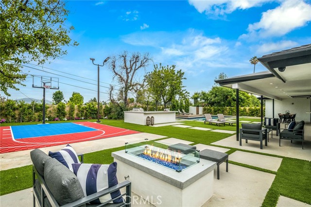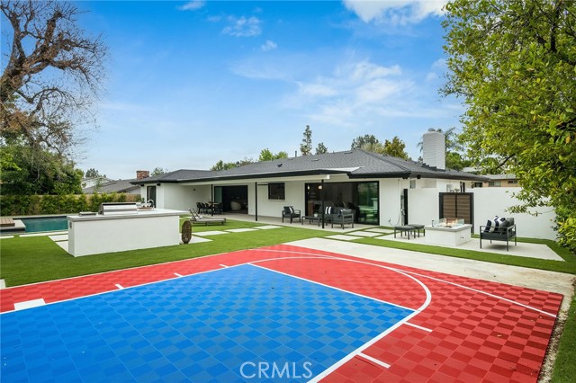 Available May 20, 2026. Offered fully furnished, this long or short term rental property (3 month min) offers everything desired in a luxury rental. A perfectly reimagined mid-century architectural find, found in the loveliest of neighborhoods, and appropriately situated in a peaceful cul-de-sac. Completely remodeled, yet retaining all the character and authentic feel, so difficult to find in new construction! With gracious and expansive curb appeal, and inviting front porch, this home does not disappoint, leading you into a beautifully appointed entry, with a spacious yet cozy office to your left, and the true heart of the home, the welcoming kitchen and family room, complete with original fireplace and tile. Designed for entertaining, this home features a dining room true to period with informal sitting area. All the main living areas feature sliders, opening out into the spectacular, ultra private backyard oasis, complete with sparkling pool, basketball court, fire pit area, outdoor kitchen and seating, with significant outdoor lounging and dining areas. No unchecked boxes here, this is a true family home with all of your entertainment needs exceeded. Your primary retreat, complete with its own outdoor patio, is located at the far end of the house, offering privacy, with significant built-in closets and storage and dressing areas, including built in vanity, and gorgeous bath. Both secondary bedrooms are en-suite, both spacious and with extensive storage and light. A convenient side entrance opens to gorgeous and very convenient, mudroom and laundry, with a guest bathroom.