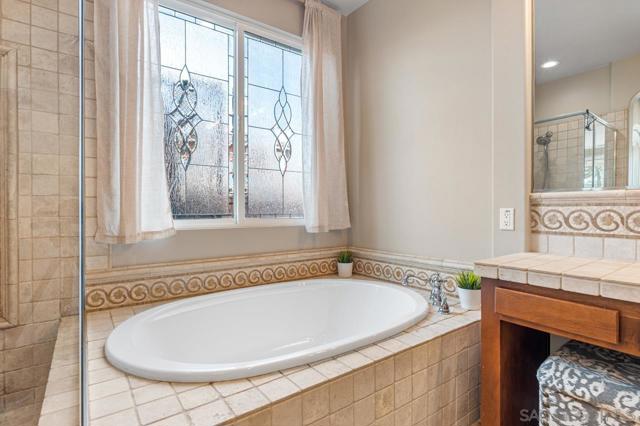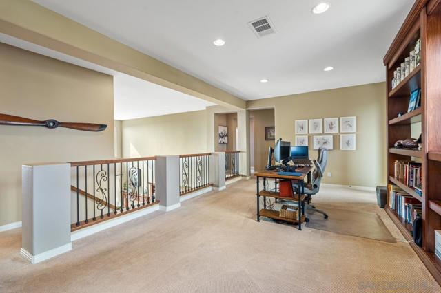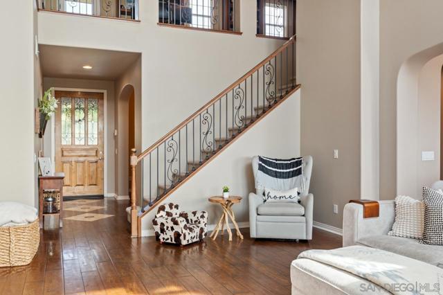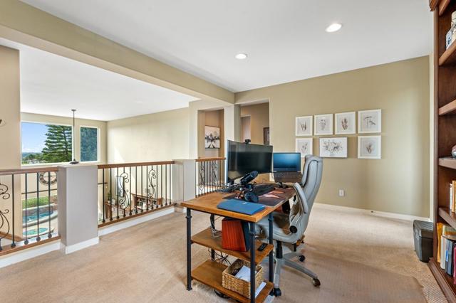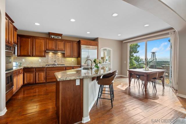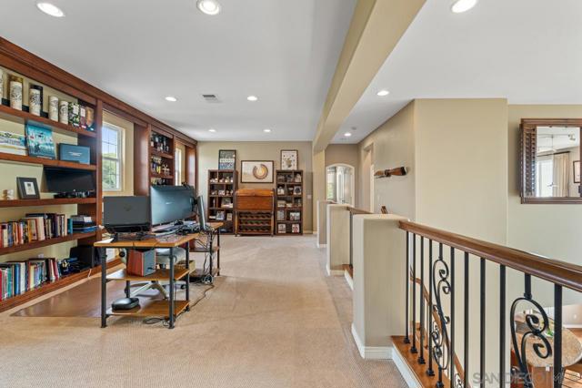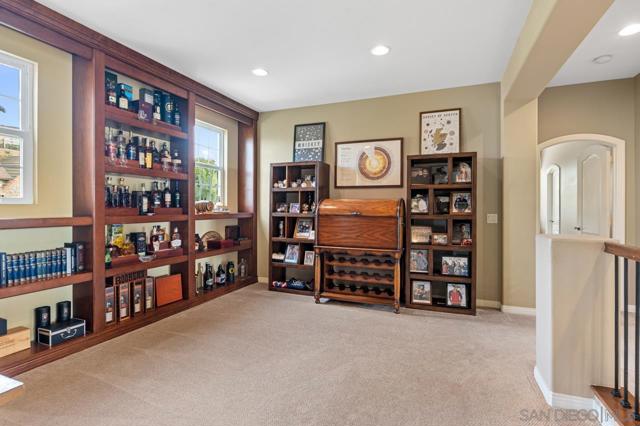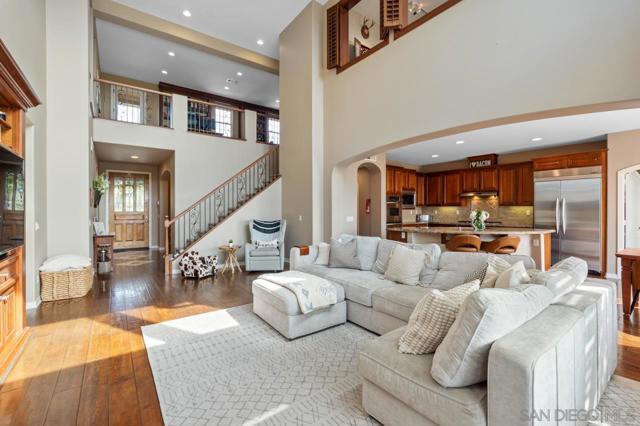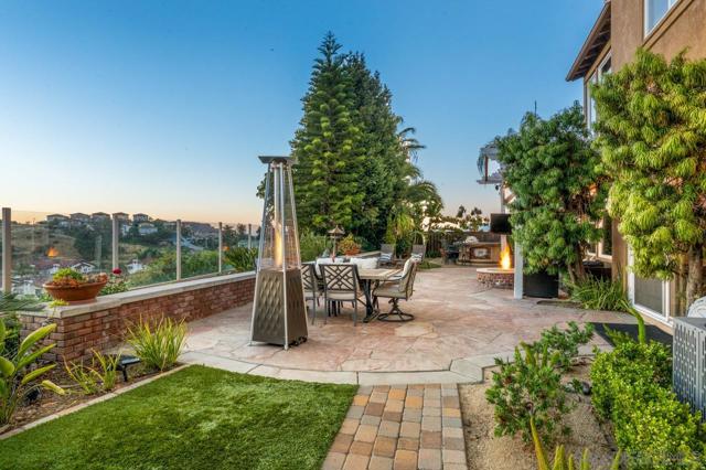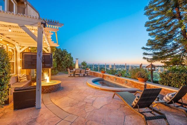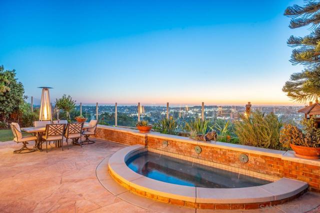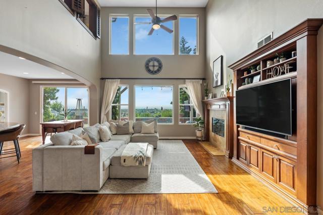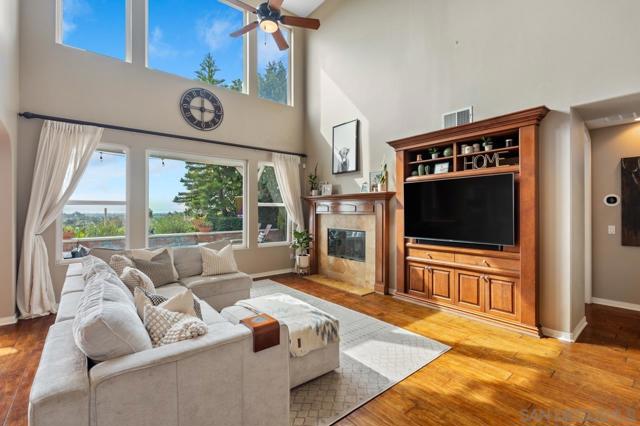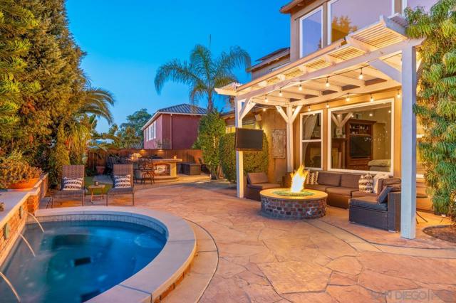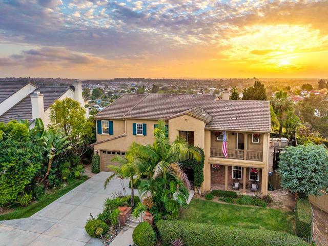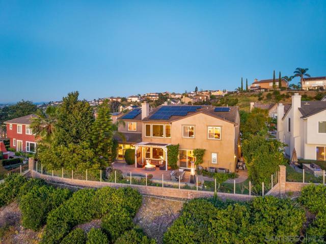 One of the most rare opportunities in Serramar! This highly sought after floor plan is very limited in number, and even fewer are situated on premium view lots like this. This former model home offers 3,799 sq ft, 4 bedrooms, and 3.5 baths, ideally positioned on a large west facing lot with truly unobstructed 180 degree westerly views of the ocean, downtown San Diego skyline, Point Loma, Coronado, and the Coronado Islands. This is an increasingly rare offering in today’s market. Thoughtfully designed and extensively upgraded, the home showcases soaring 20’ ceilings and a light filled open concept floor plan, along with a desirable first floor primary suite. Recent improvements include newer HVAC, fresh interior paint, and recently replaced carpet. Flexible living spaces include a spacious loft, bonus room ideal for a media or game room, and a downstairs office that could easily be converted to a 5th bedroom. The expansive backyard is designed for both entertaining and everyday enjoyment, featuring an in ground jacuzzi, built in BBQ island, fire pit, and generous space for play. Surrounded by mature landscaping, the yard offers privacy while still taking full advantage of the home’s sweeping, panoramic views. Additional highlights include OWNED SOLAR to significantly reduce electricity costs and an oversized 2 car garage offering versatility for storage, a home gym, workshop, or additional hobby space. Ideally located within walking distance to Helix Charter High School and just minutes from SDSU with convenient access to the 94, 8, and 125 freeways for easy commuting.