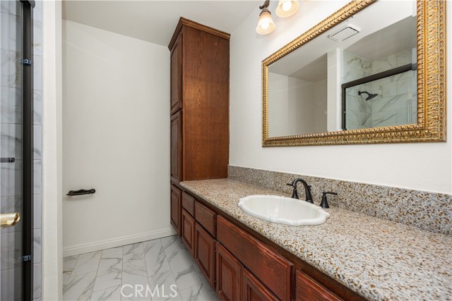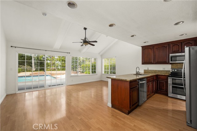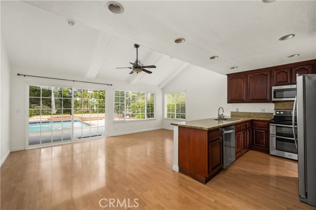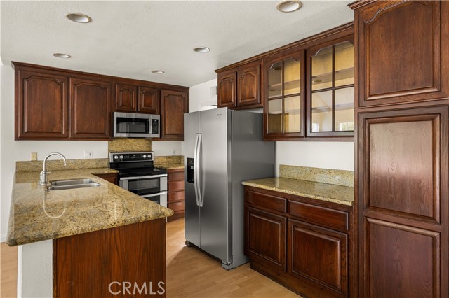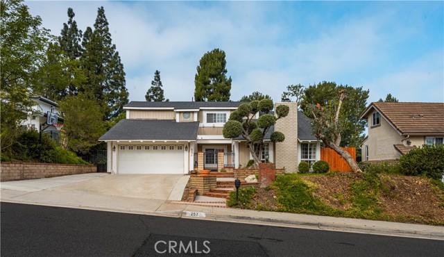 Welcome to 257 S. Hillcrest St. in Anaheim Hills, a beautifully maintained two-story home located in the highly desirable Woodcrest Estates community. This spacious residence offers five bedrooms and three bathrooms, featuring an open and inviting floor plan designed for comfortable living and entertaining. Inside, you'll find a blend of elegance and functionality with laminate flooring and plush carpeting upstairs throughout. The home features a step-down formal living room and dining room, soaring cathedral ceilings, and a remodeled kitchen equipped with granite countertops, stainless steel appliances, and rich dark wood cabinetry. The first level features three bedrooms and two bathrooms, offering convenient single-level living. The home has been freshly painted throughout, creating a bright and updated feel. The primary bathroom shower has been recently remodeled with modern finishes. Upstairs, you'll find brand-new carpeting and newly installed ceiling fans, adding comfort and style. The home also includes dual-pane windows throughout, new blinds enhancing energy efficiency and overall comfort. The backyard is a private retreat featuring a sparkling pool and spa, perfectly positioned to take in beautiful views of the surrounding hills and mature trees ideal for relaxing or entertaining in a serene outdoor setting. The Woodcrest community is close to parks, hiking trails, restaurants, shopping, golf and award winning blue ribbon schools