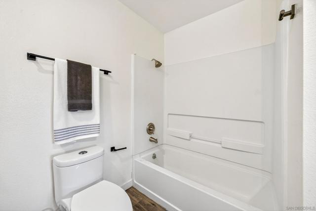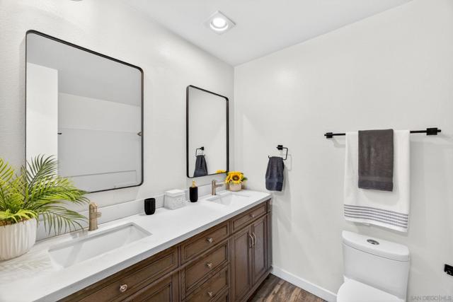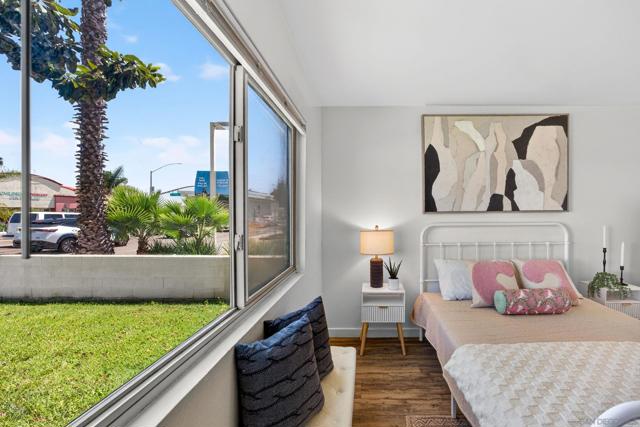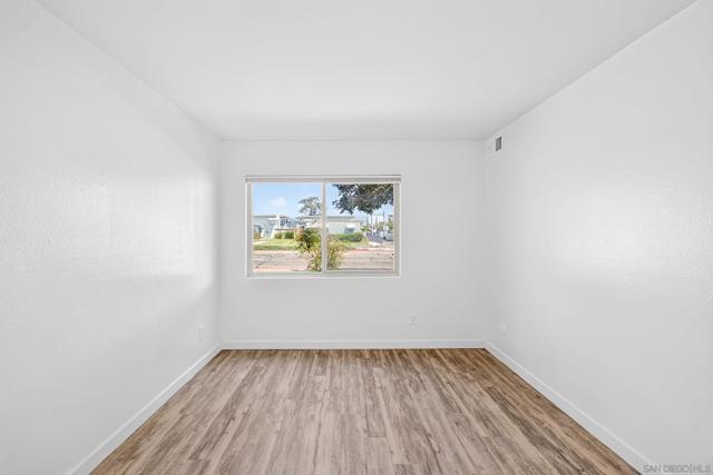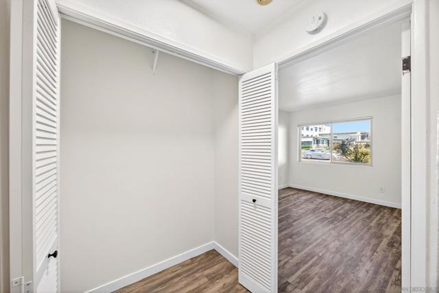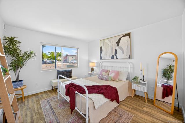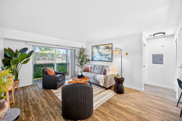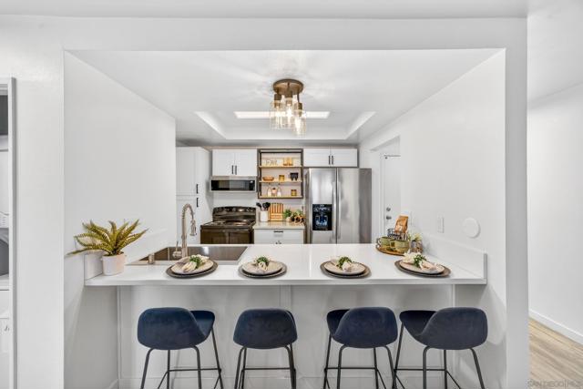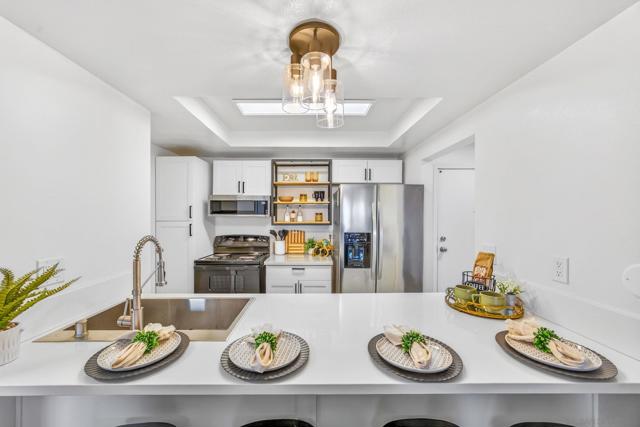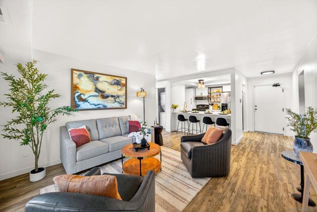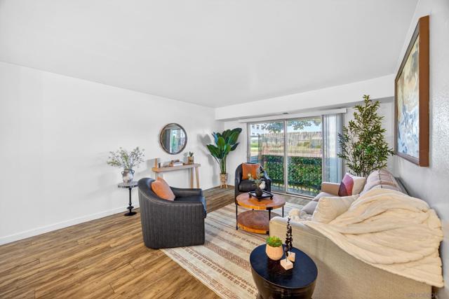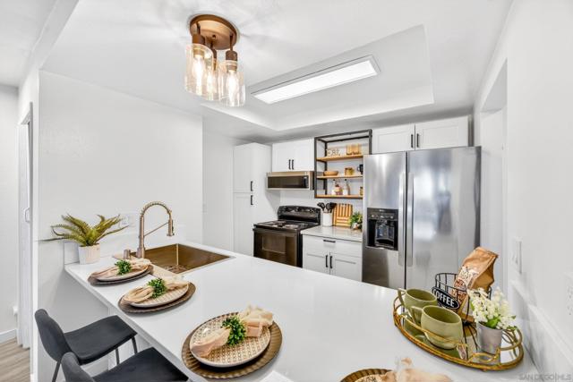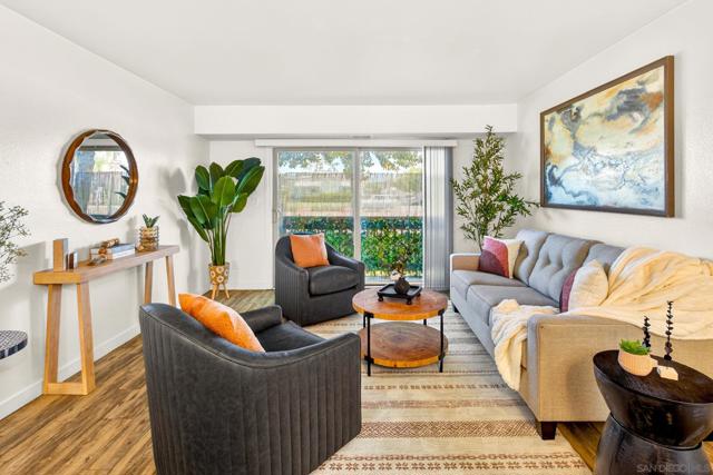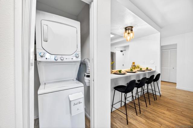 VA Approved!! Welcome to your modern, move-in-ready 2-bedroom, 2-bathroom condominium in the heart of Chula Vista! This bright, first-floor unit (936 sq. ft.) offers a sleek minimalist style designed for comfort and effortless living. Step into an updated kitchen featuring pure white quartz prefab slab and smaller green-vein natural quartzite slab countertops, an electric stove, and sleek cabinets. Enjoy the rare convenience of an in-unit stacked washer and dryer. Both the guest and master bathrooms have been refreshed with new medicine cabinets, mirrors, and lighting for a clean, contemporary feel. The spacious living room opens through sliding glass doors to a private balcony, perfect for morning coffee. It includes all 3-ft-wide doors (excellent for accessibility), one assigned parking space in the rear, and low-maintenance living at its best. The HOA takes care of water, sewer, trash, and hot water. Turnkey and ready for immediate move-in — this updated condo is a fantastic opportunity for first-time buyers, veterans, or anyone seeking convenient, worry-free living in Chula Vista. Don’t miss it!