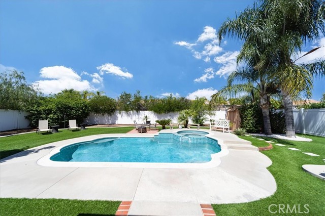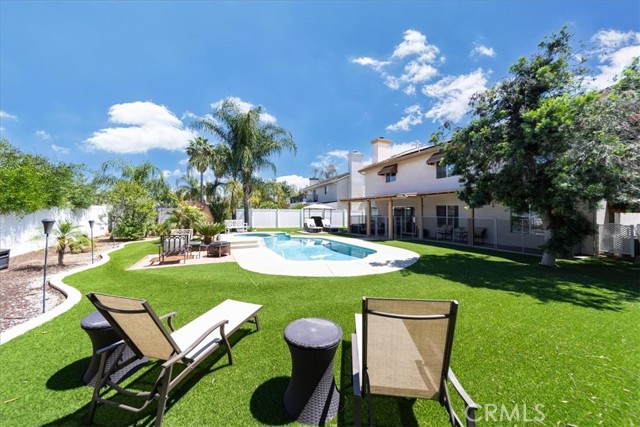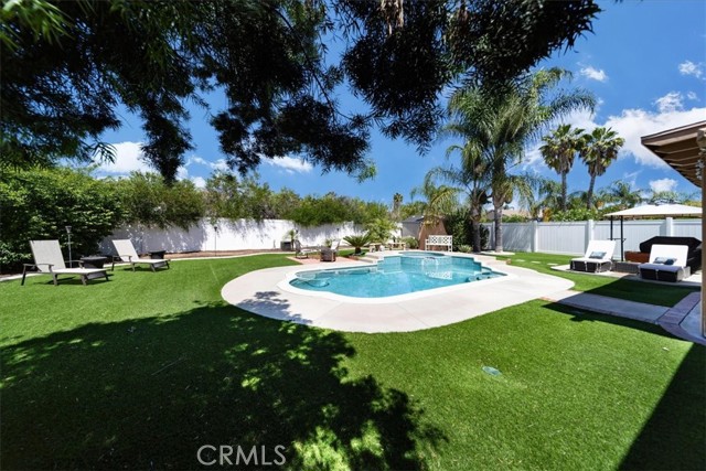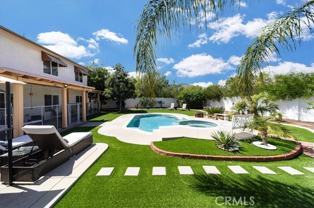 Welcome to this stunning four-bedroom, three-bath home in the highly desirable city of Wildomar, California! Boasting 3,124 sq ft of living space on a 10,019 sq ft lot, this property features a beautiful backyard resort style. The back yard has an amazing pool and spa, perfect for relaxation and entertainment; Mature fruit trees lush landscaping and artificial grass for easy maintenance. The front yard has nice big trees and great curb appeal with golf-like turf. The garage includes a mini-split system for those hot summer days. This is a fantastic value, considering the significant savings on utilities. Don't miss the opportunity to make this dream home yours! Nestled in a very nice community, this home offers an exceptional floor plan with 1 full bedroom and bath downstairs. 3 bedrooms and 2 bathrooms upstairs for ultimate privacy. The kitchen layout is perfect with an open concept into the living room and backyard oasis. What really sets this property apart is the incredible FREE UTILITY PACKAGE: you only pay for water, gas, and trash! The owner covers up to $800 of the electric bill per month (SOLAR), along with pool maintenance (approx. $225/month), landscaper to cover all the items the yard requires to maintain its luxurious look (approx. $150/month) and house alarm fees (approx. $85/month) totaling in just under $1,300.00 in estimated bills the landlord is potentially willing to pay making the actual rent for this home closer to $4,700.00 per month.