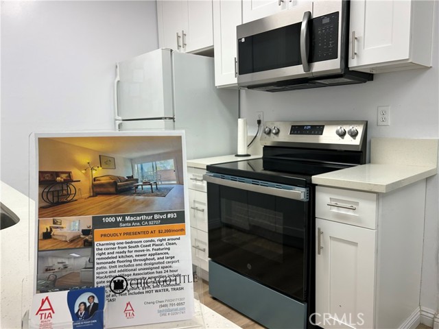 Charming one-bedroom condo, right around the corner from South Coast Plaza! Located near major shopping, entertainment and employment. Clean, right and ready for move-in! Featuring remodeled kitchen, newer appliances, lemonade flooring throughout, and large patio. Conveniently located in the heart of South Coast metro. Unit includes 1 designated carport space and additional unassigned space. MacArthur Village Association has includes 24 hour gate security. Community amenities include 5 pools, spas, 4 tennis courts, basketball court, volleyball court, gym, and clubhouse. Best of all, rent includes HOT WATER, TRASH AND GAS!